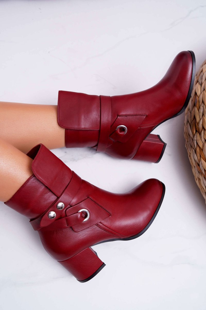 Botki Damskie Skórzane Wsuwane Bordowe 1820 Laura Messi