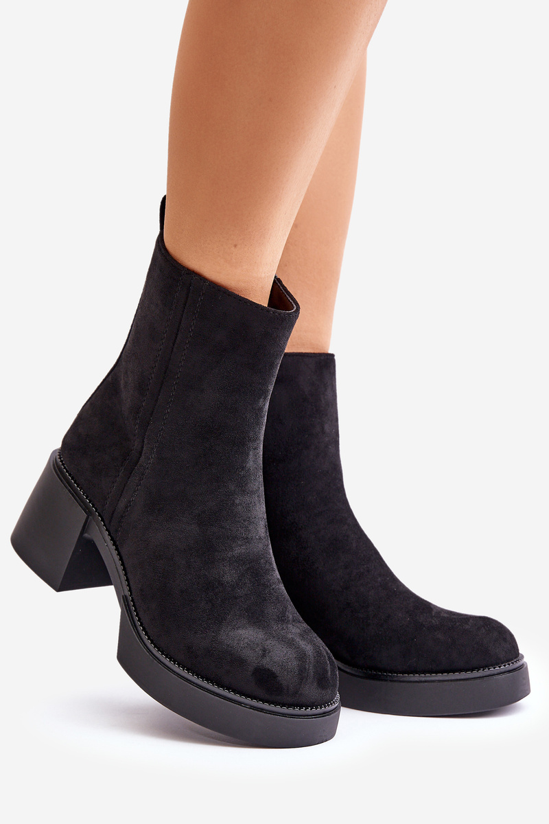 Botki Damskie Słupek Eko Zamsz Ocieplane Czarne Meriluna