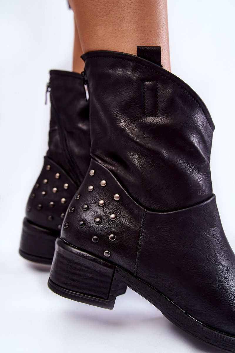Botki Damskie Suwak Ćwieki Czarne Lance