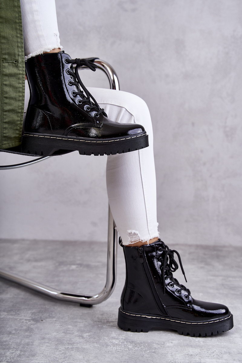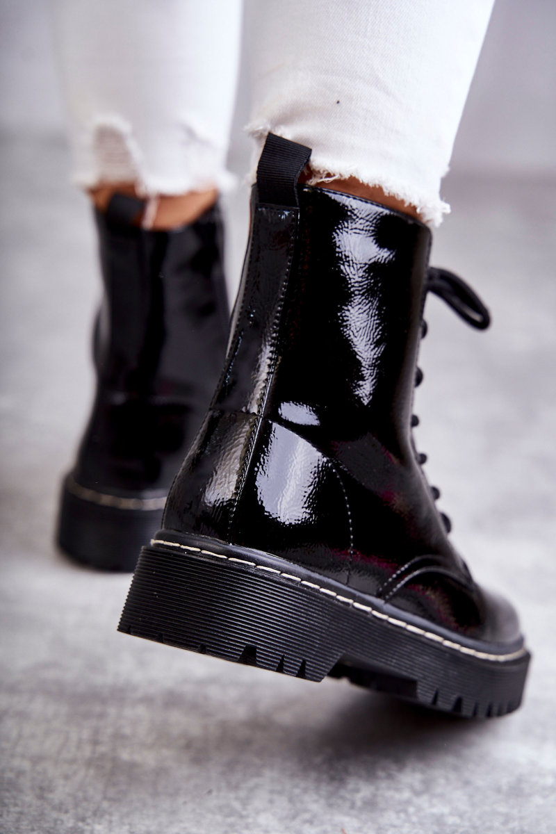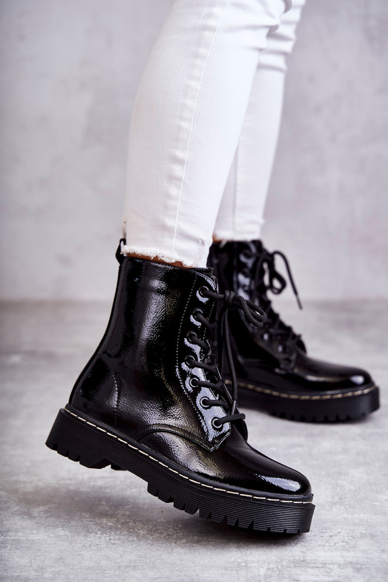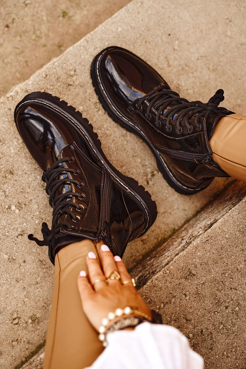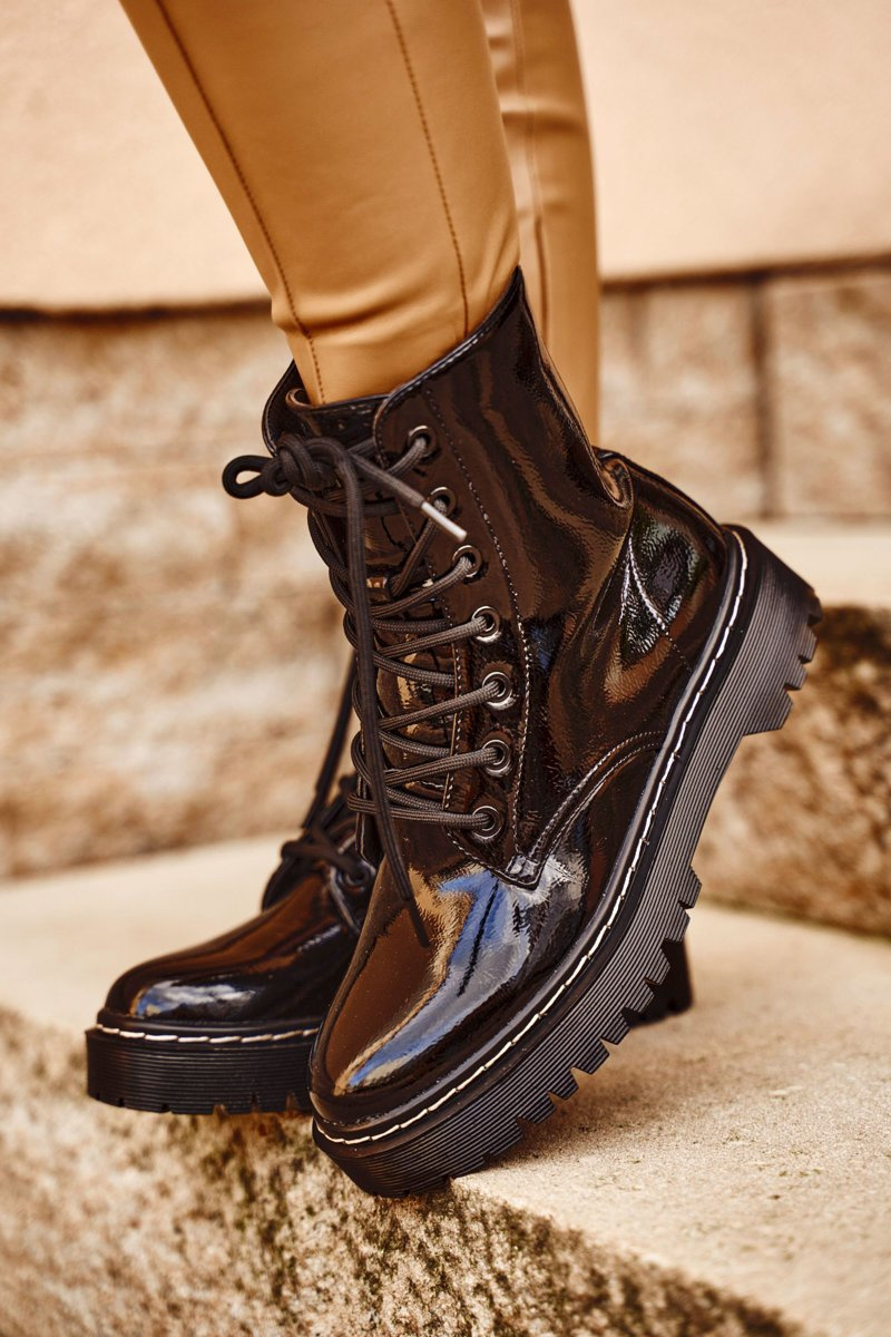 Te cudowne trapery mogą być Twoje! Trapery wykonane z lakierowanej skóry ekologicznej. Wnętrze jak i wkładka wyścielone kocem obuwniczym. Przy wyborze rozmiaru prosimy sugerować się tabelą rozmiarów.