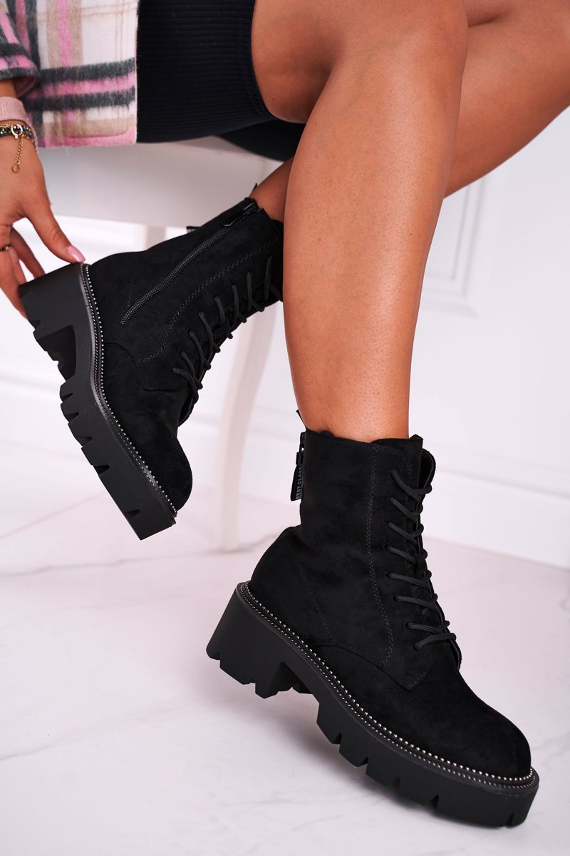 Botki Damskie Trapery Czarne Zamszowe Malawi