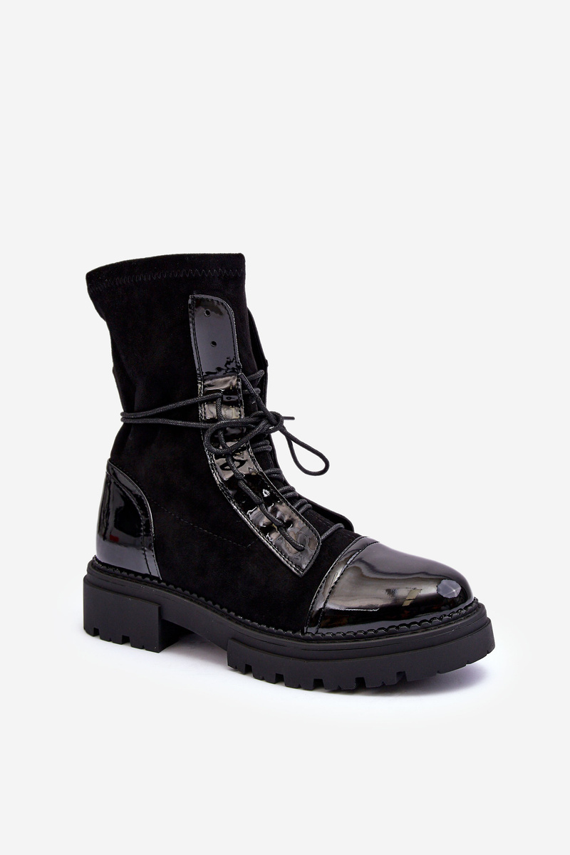 Botki Damskie Wiązane Zamsz Czarne Marirla 6054