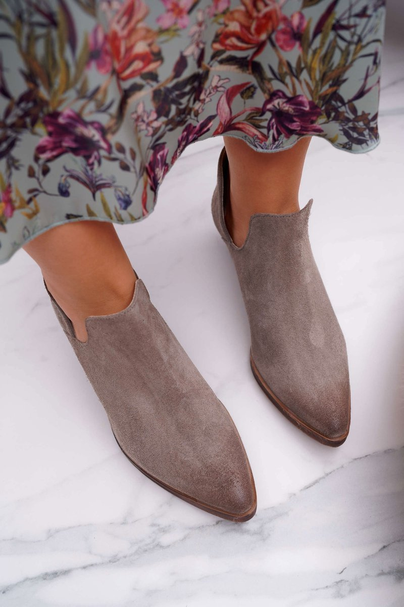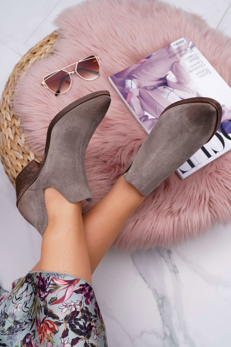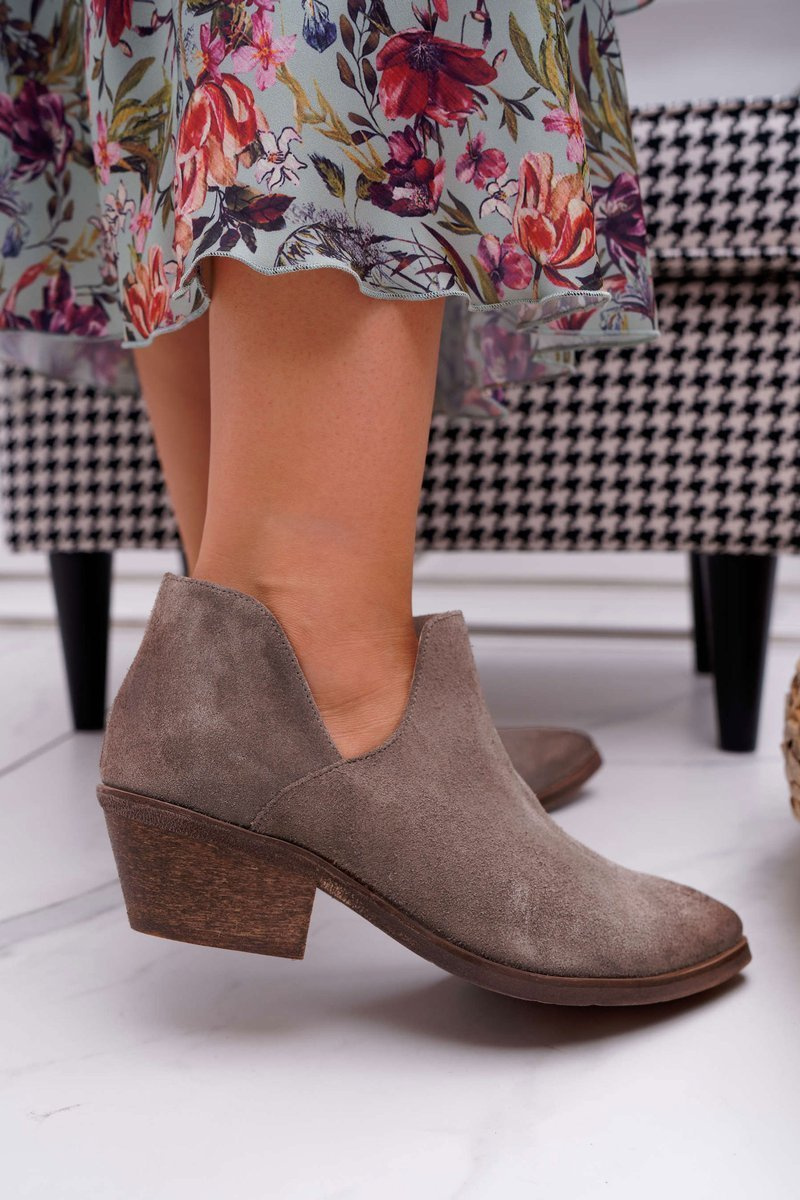Botki to nie tylko buty na chłodne dni. Świetnie sprawdzą się również podczas tworzenia wiosennych stylizacjach. Botki posiadają delikatne wycięcia na wysokości kostek oraz płaski obcas, który stał się bardzo modny w tym sezonie. Botki w całości wykonane ze skóry zamszowej. Produkt Polski, co gwarantuje nam komfort oraz wysoką jakość wykonania. Idealne do zwiewnych sukienek oraz jeansowych spodni. Przy wyborze rozmiaru prosimy sugerować się tabelą rozmiarów.