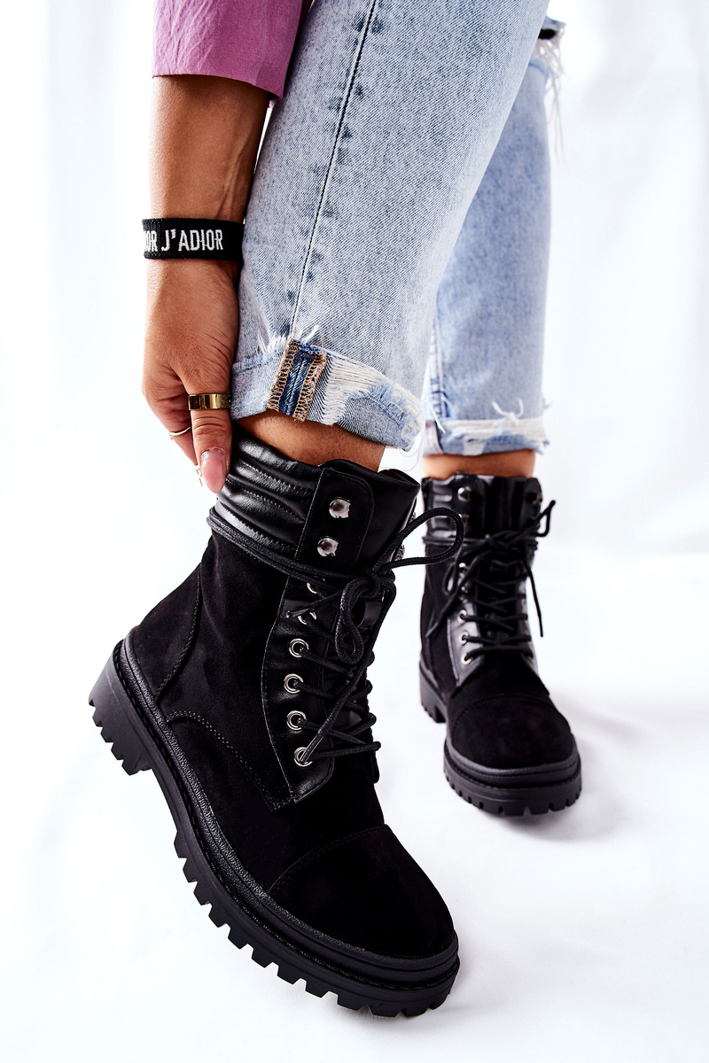 Botki Damskie Workery Zamszowe Czarne Deliopis