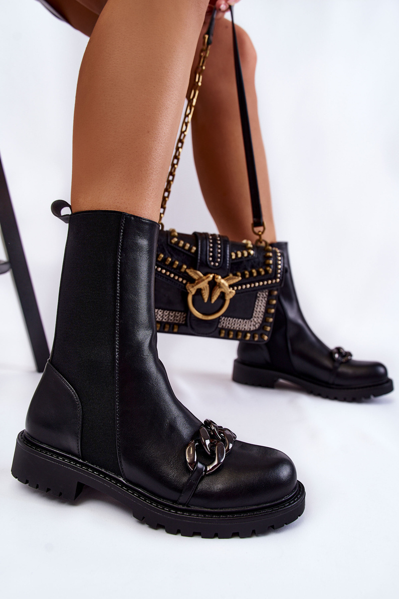 Botki Damskie Wsuwane Łańcuch Czarne Maliya