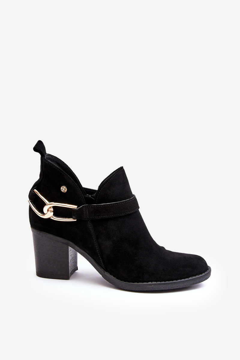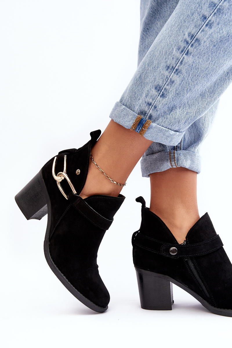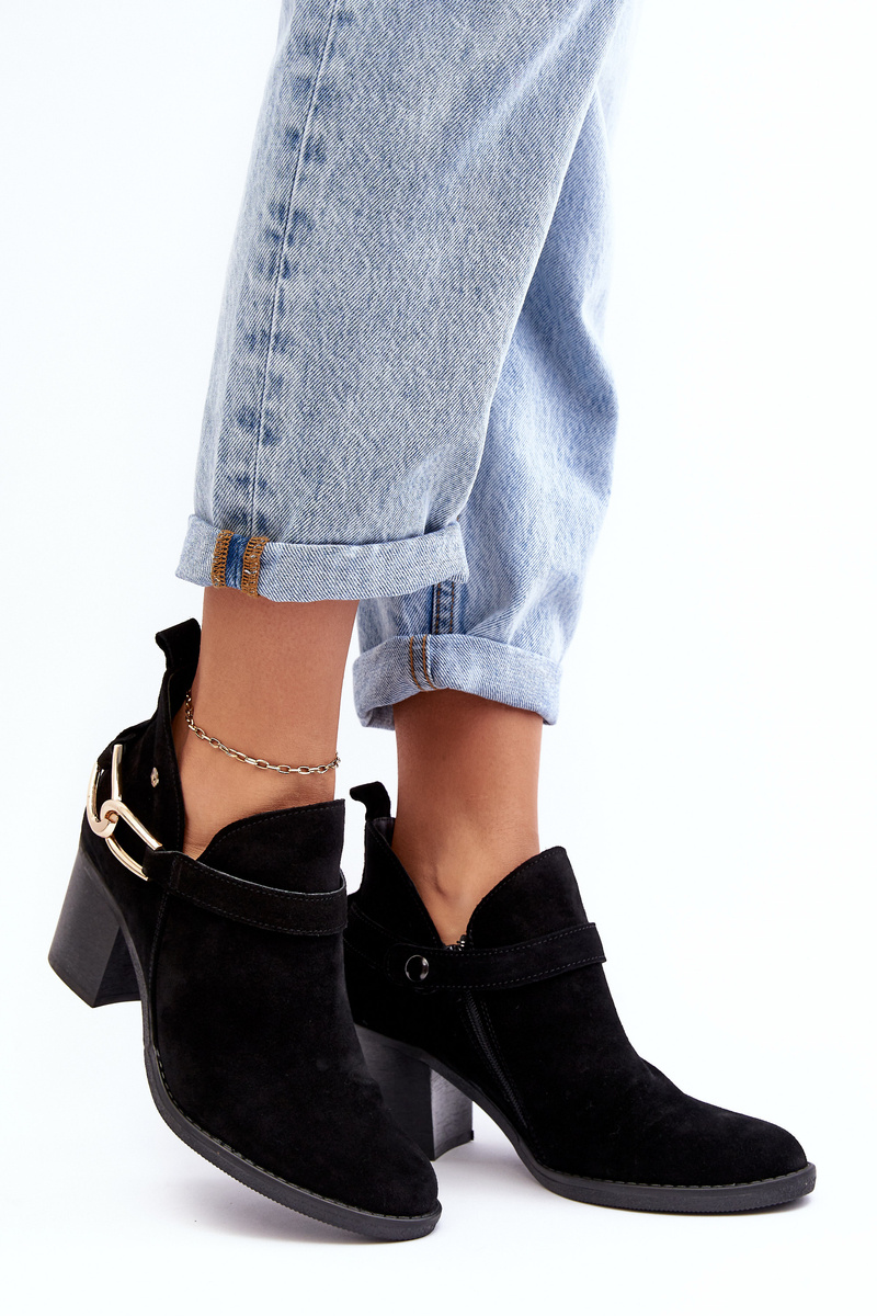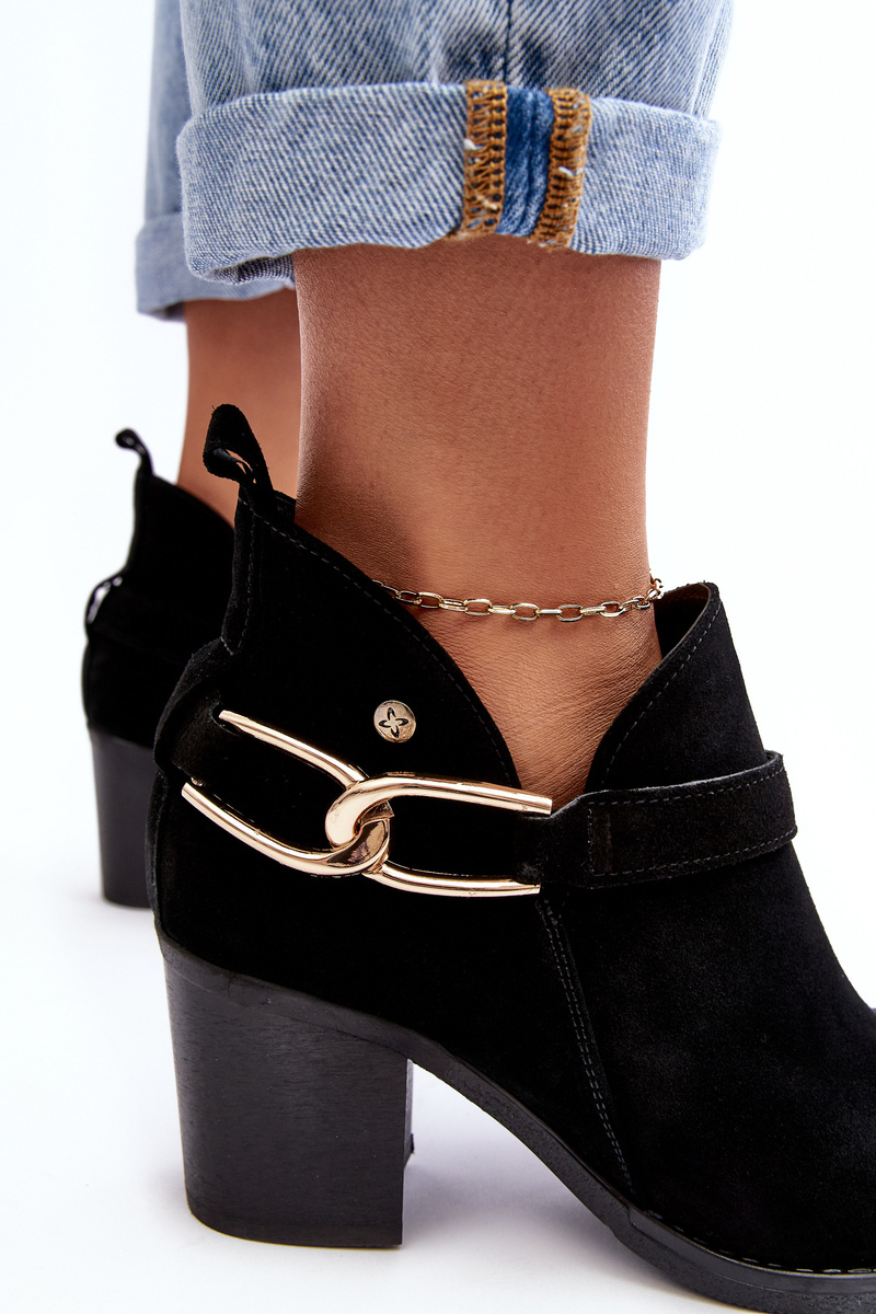 Botki Damskie Zamsz Obcas Czarne Maciejka 06247-01