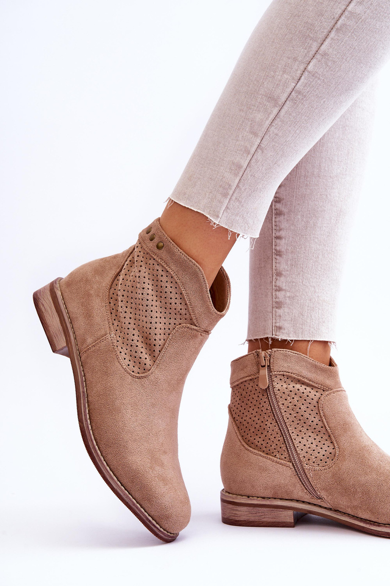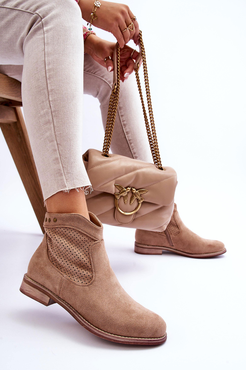 Botki Damskie Zamsz Płaski Obcas Beżowe Liana