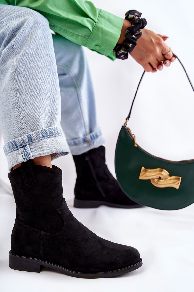 Botki Damskie Zamsz Płaski Obcas Czarne Fiorenz