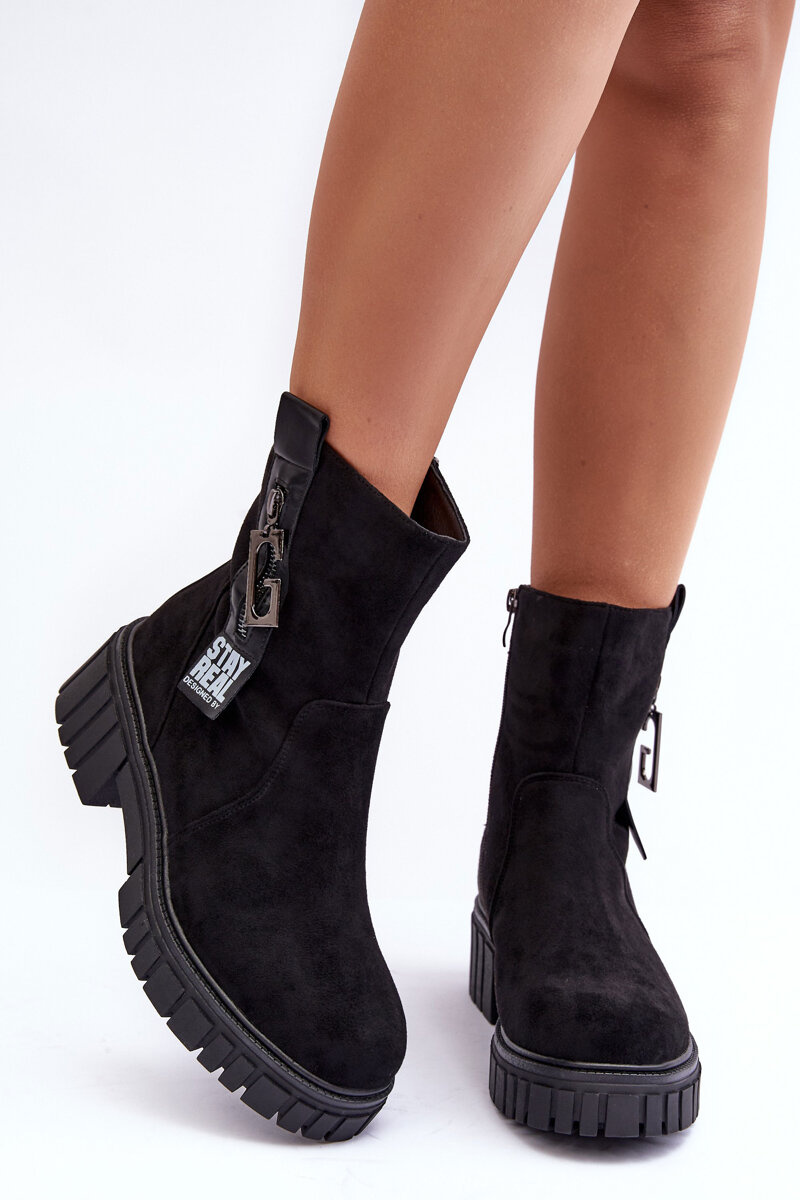 Botki Damskie Zamsz Płaski Obcas Czarne Lunai SZ101P