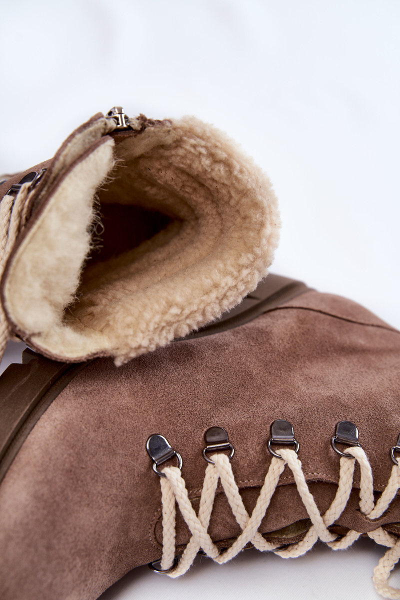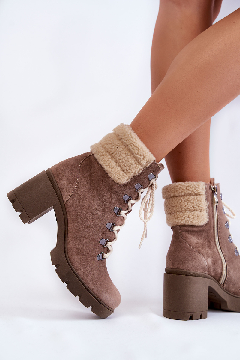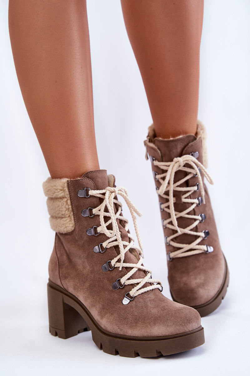 Botki Damskie Zamsz Sznurowane Obcas Brązowe Lemar Fenya
