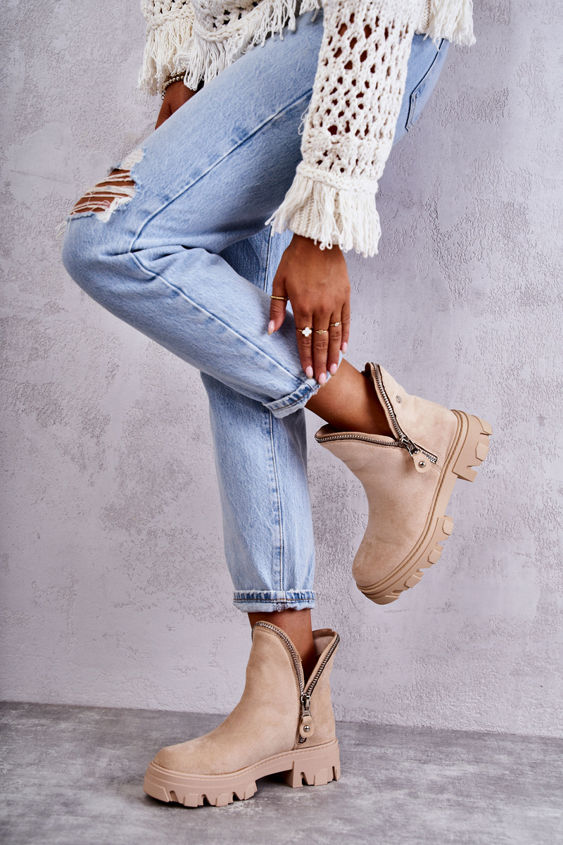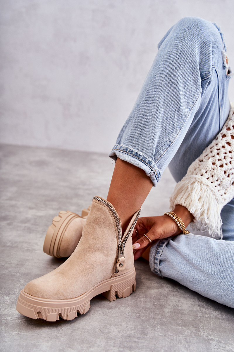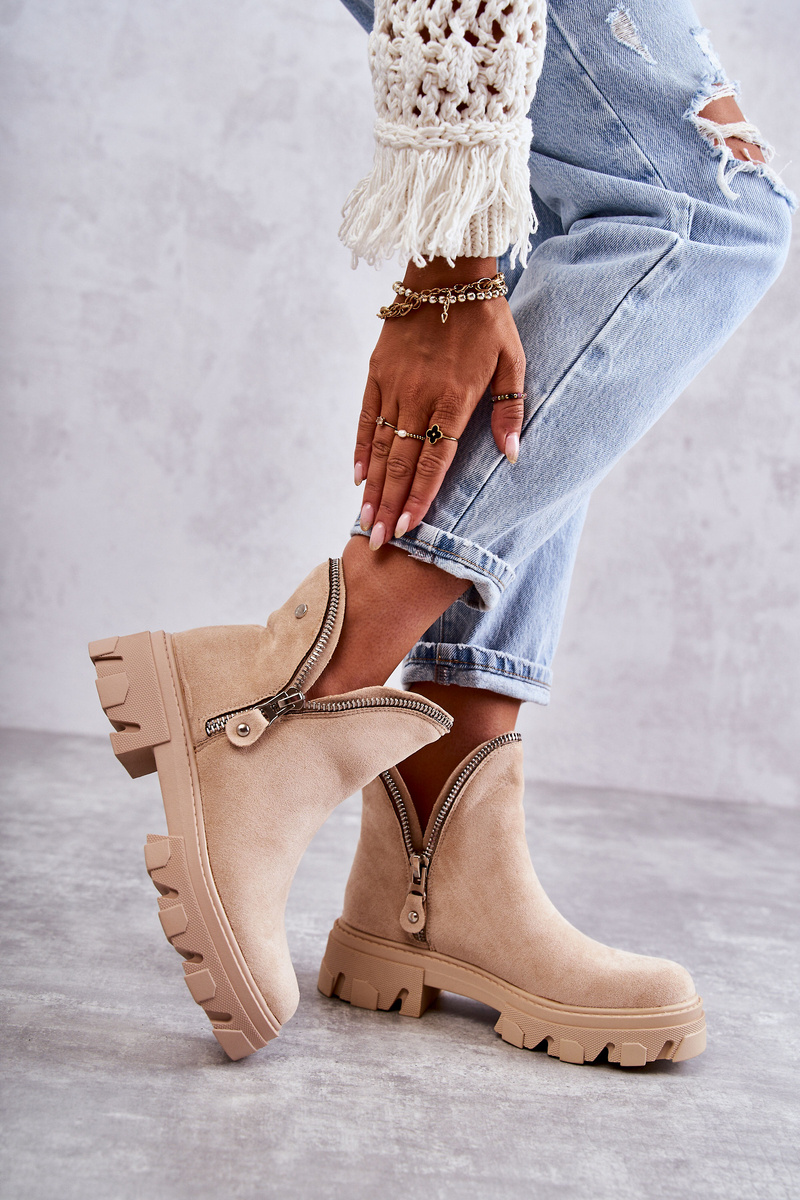 Botki Damskie Zamsz Wycięcia Beżowe Rhythm