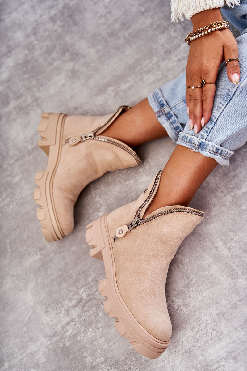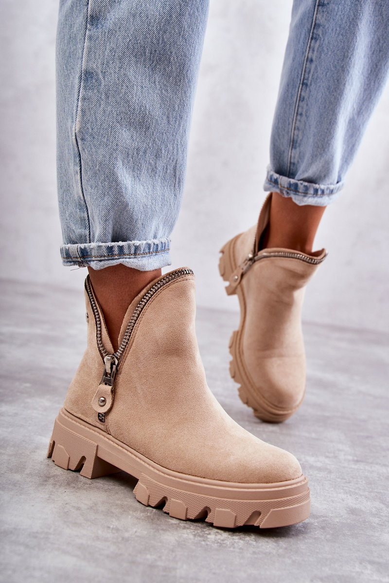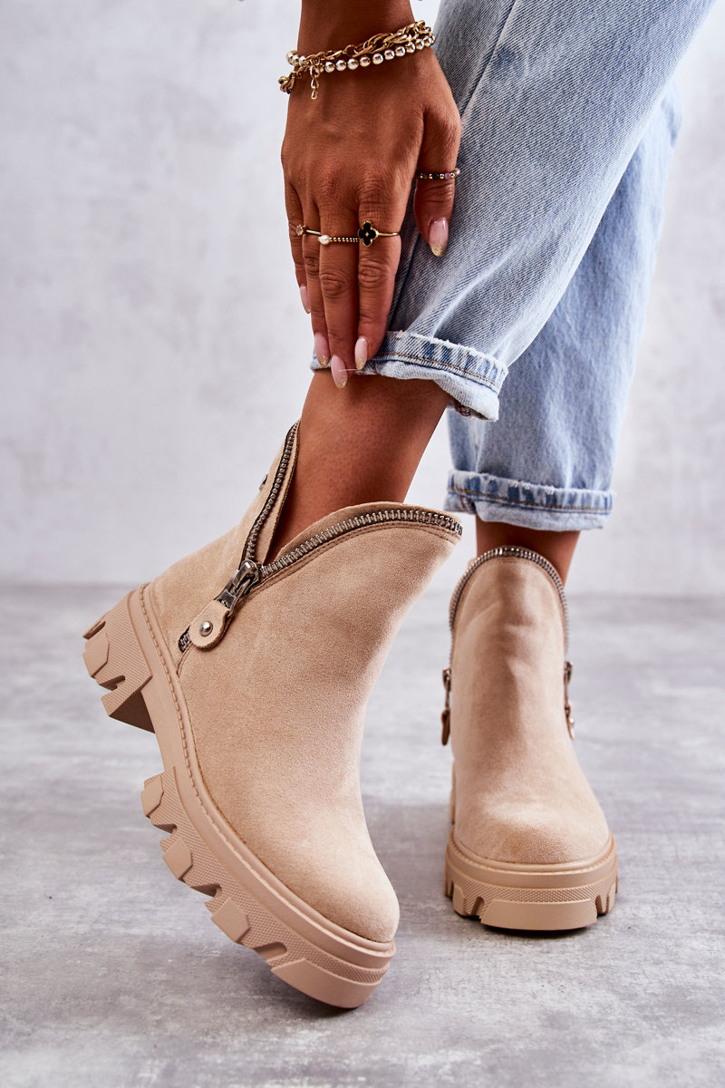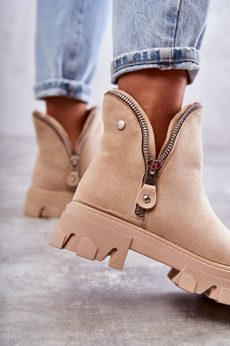 Botki Damskie Zamsz Wycięcia Beżowe Rhythm