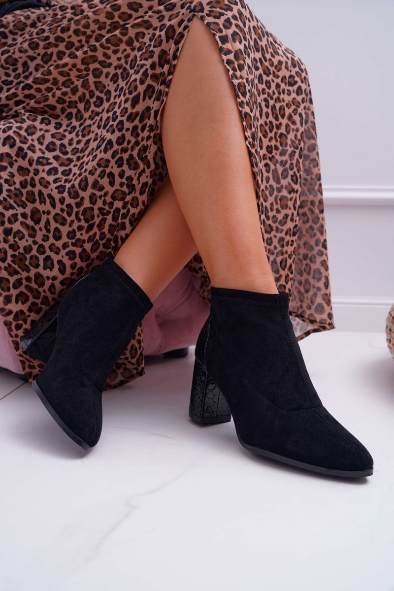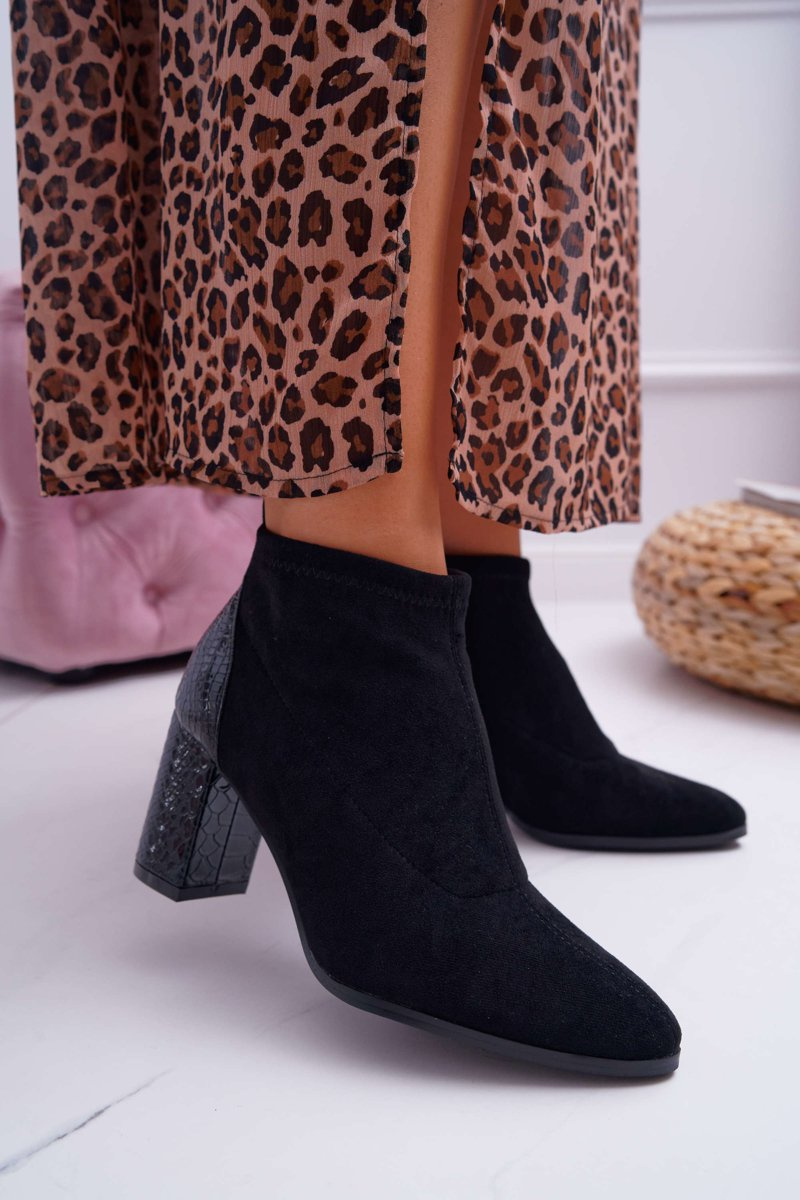 Botki Damskie Zamszowe Na Słupku Czarne Ferrous