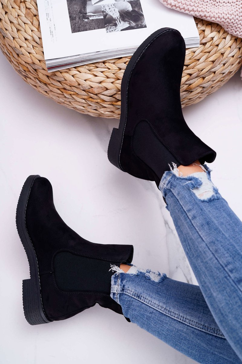 Botki Damskie Zamszowe Sztyblety Czarne 8BT35-0585