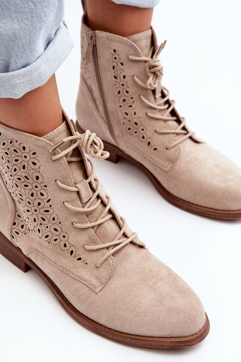 Botki Damskie Ze Wzorem S.Barski HY66-136 Jasnobeżowe