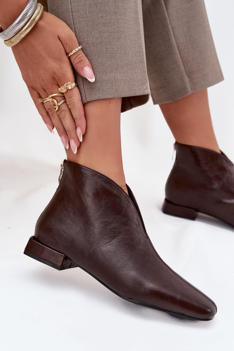 Botki Eko Skóra Niski Obcas Zamek Czekoladowe Elvienne