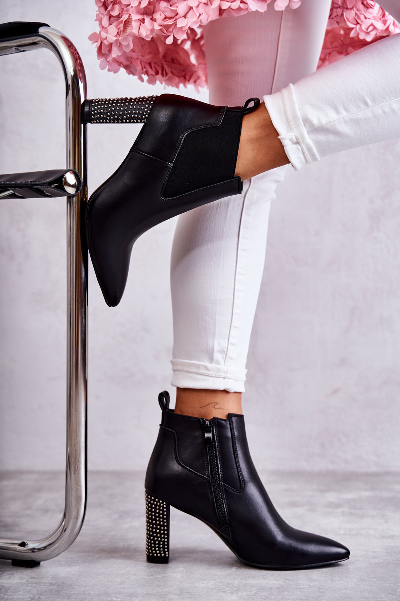 Botki Eleganckie Słupek Dżety Czarne Elinor