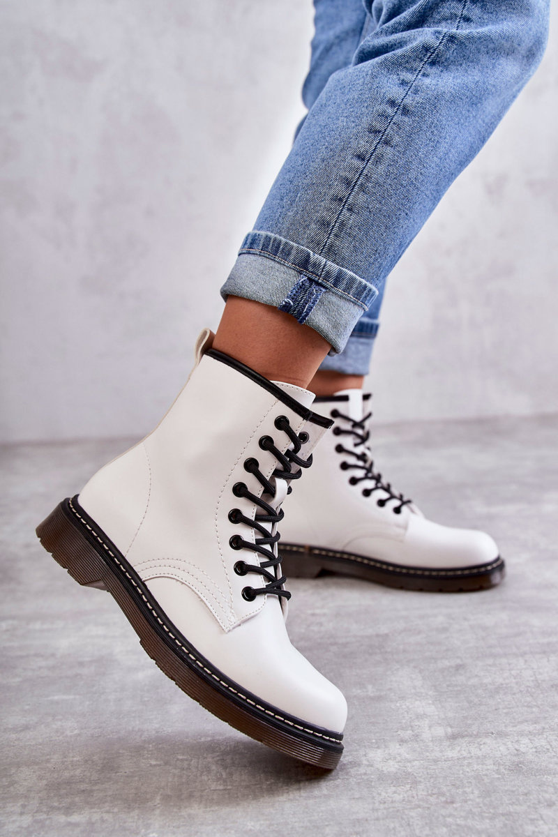 Botki Glany Damskie Wiązane Białe Lavita