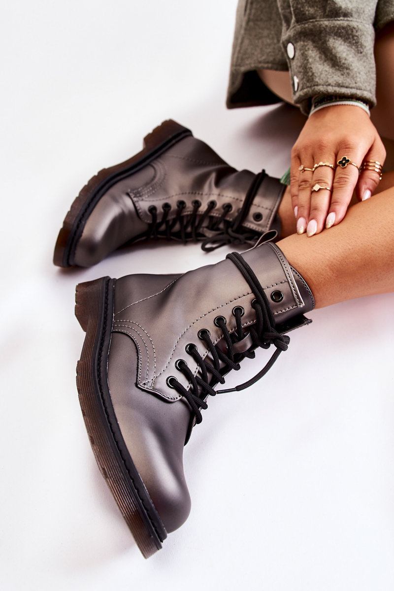Botki Glany Damskie Wiązane Ciemnoszare Lavita