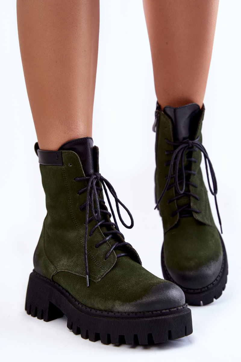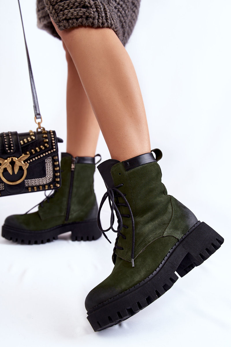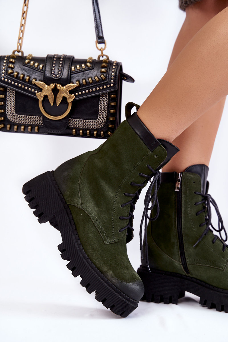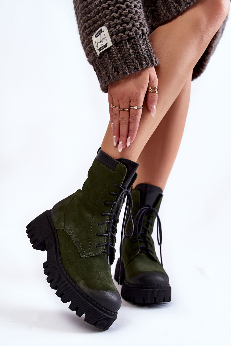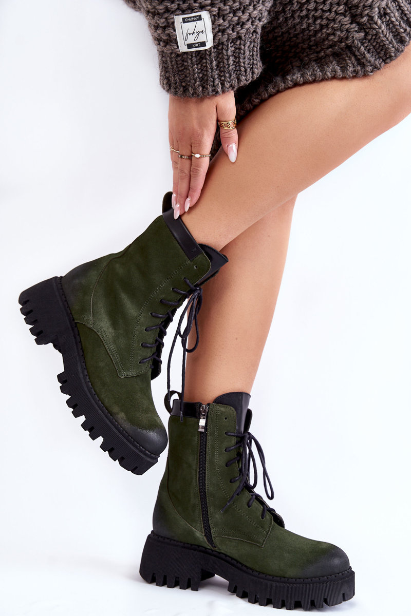 Botki Klasyczne Zamsz Ocieplane Zielone Lemar Caima