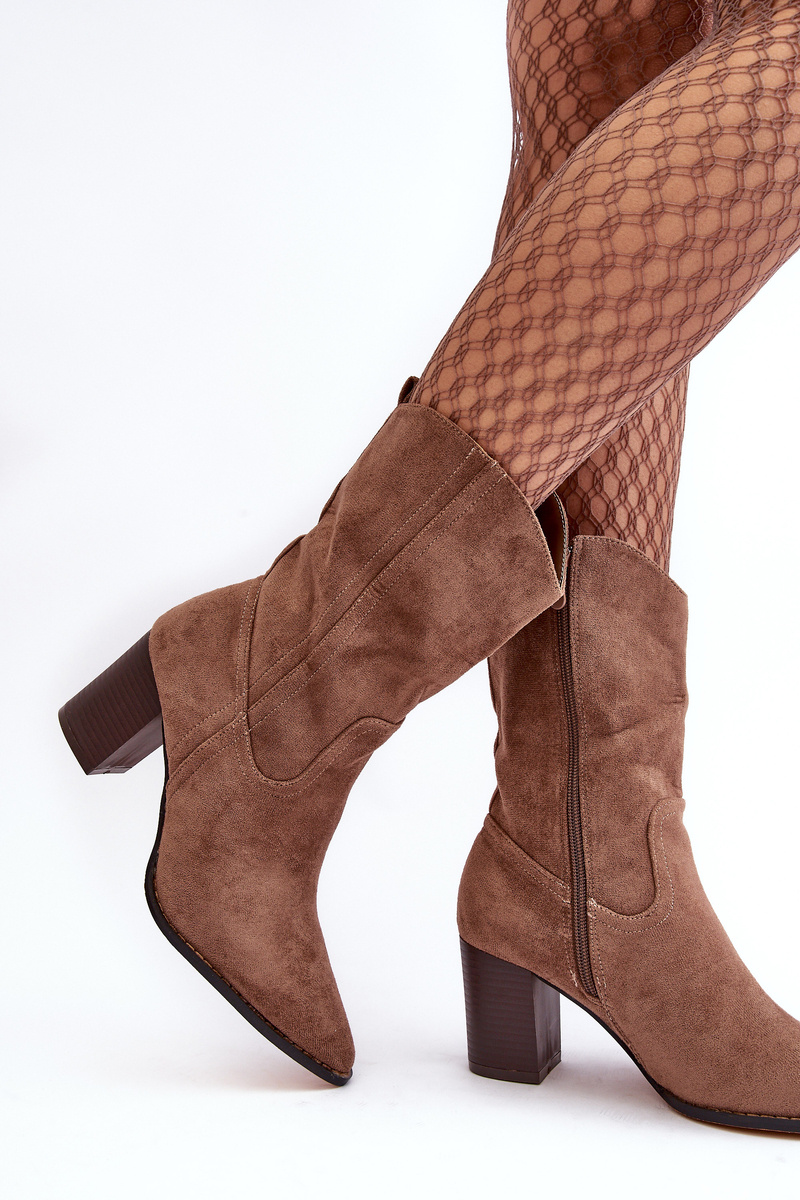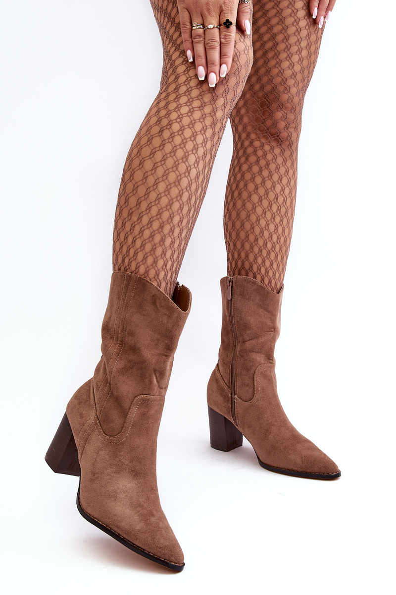 Botki Kowbojki Damskie Słupek Suwak Ciemnobeżowe Danell