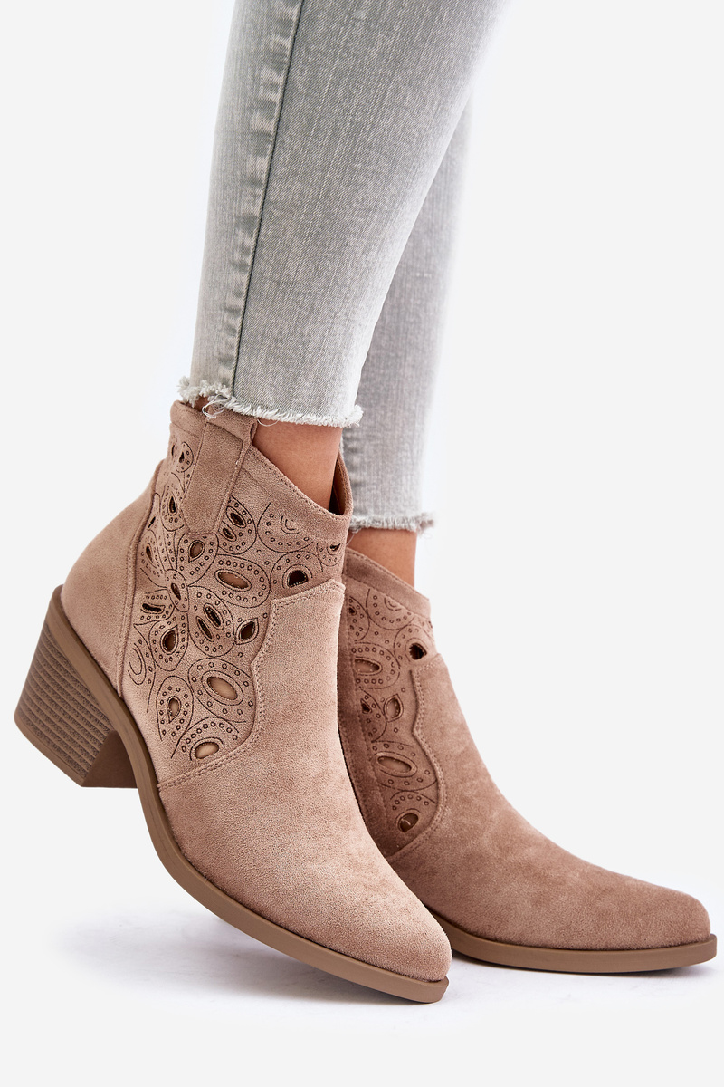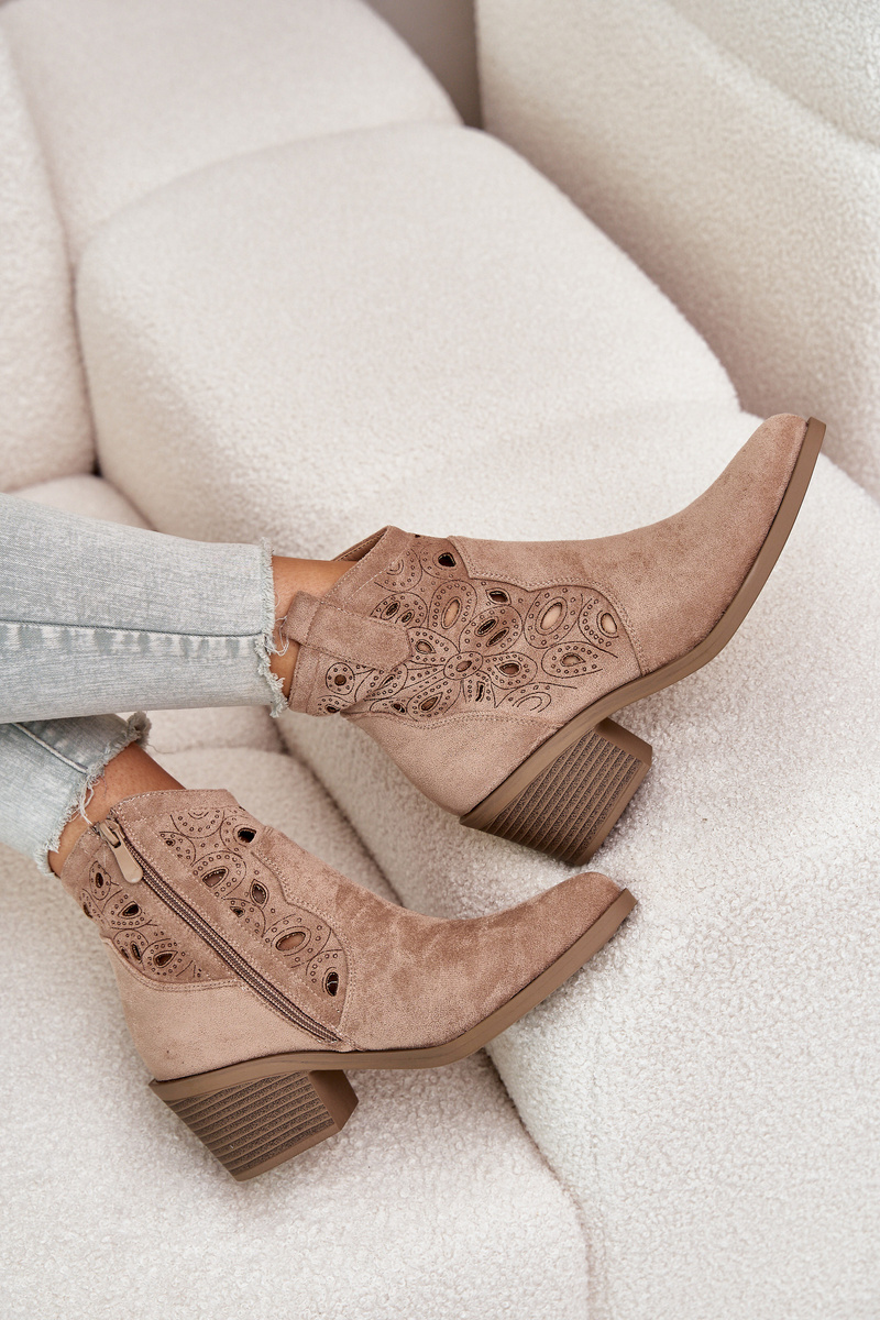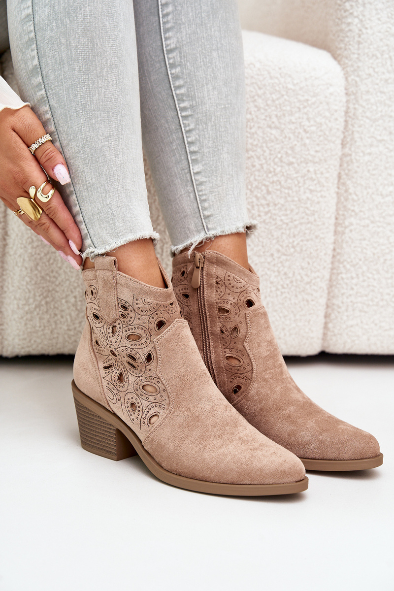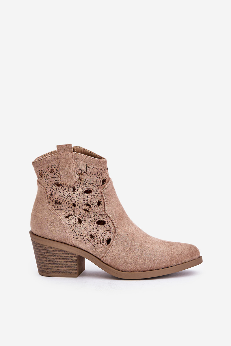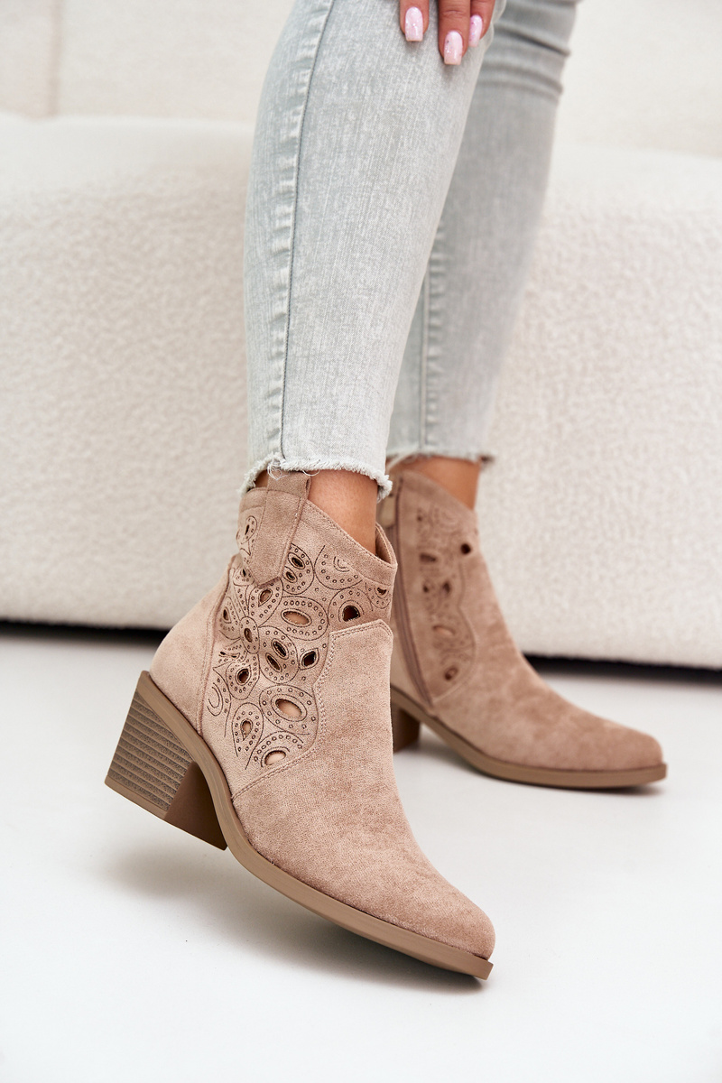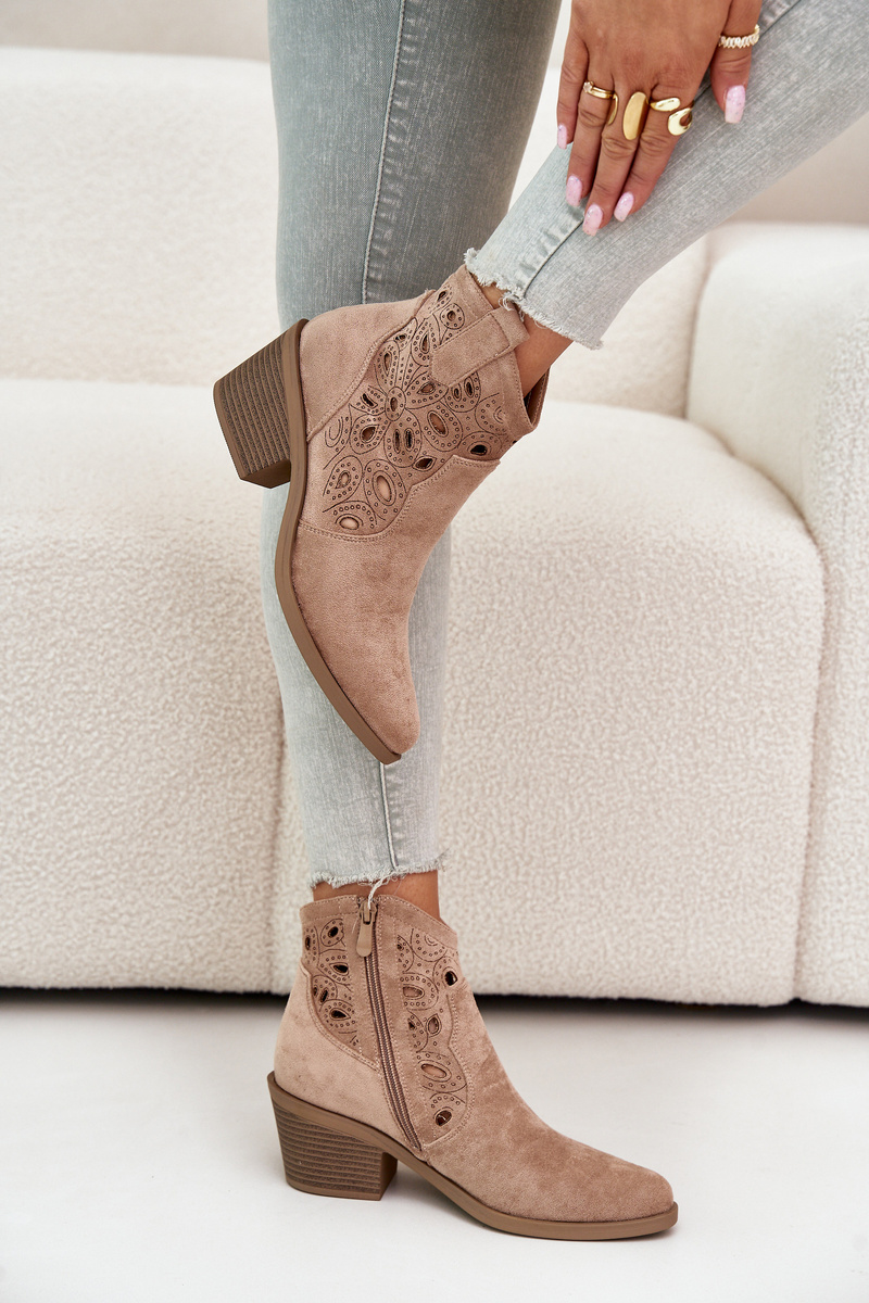 Botki Kowbojki Damskie Zamsz Ażur Beżowe S.Barski HY42-086