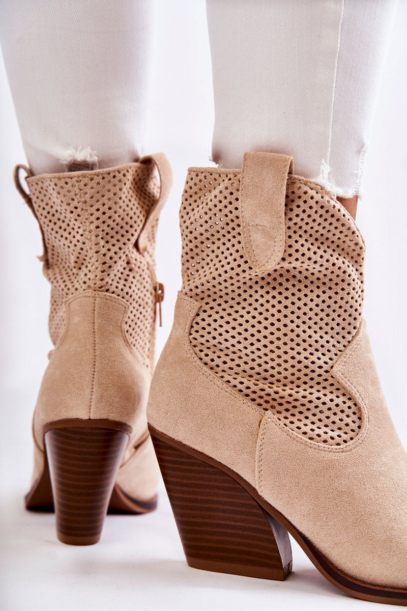 Botki Kowbojki Damskie Zamsz Ażurowe Beżowe Eleonore