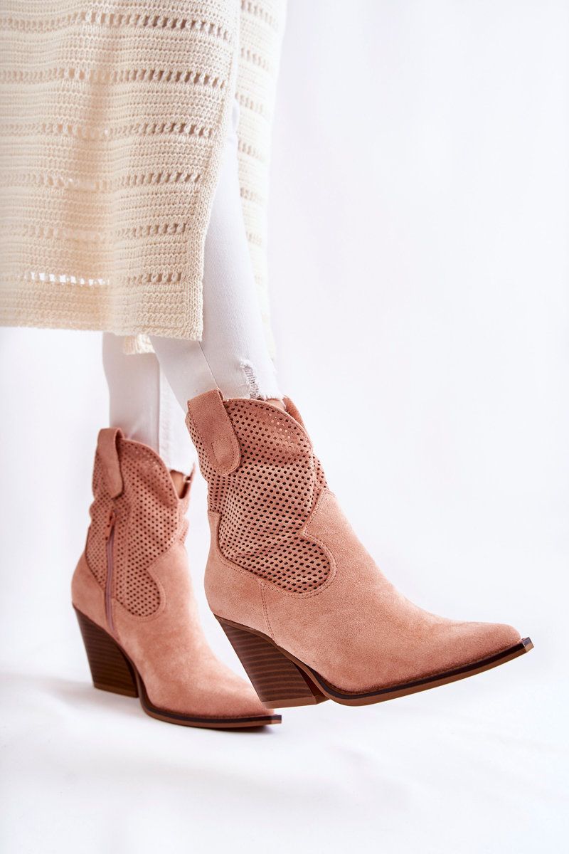 Botki Kowbojki Damskie Zamsz Ażurowe Różowe Eleonore