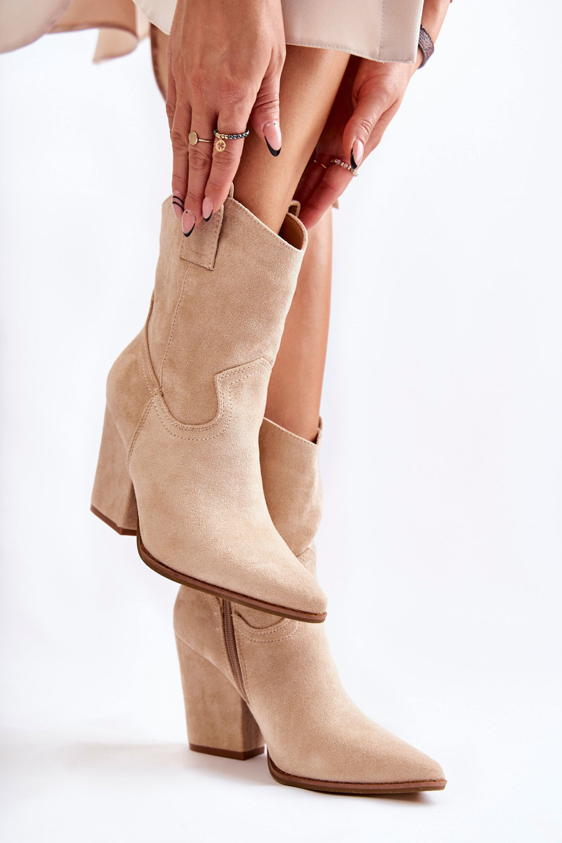Botki Kowbojki Damskie Zamsz Beżowe Mindy