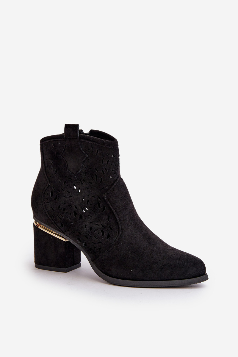 Botki Kowbojki Eko Zamszowe Ażurowe Obcas Słupek Czarne Vosilara