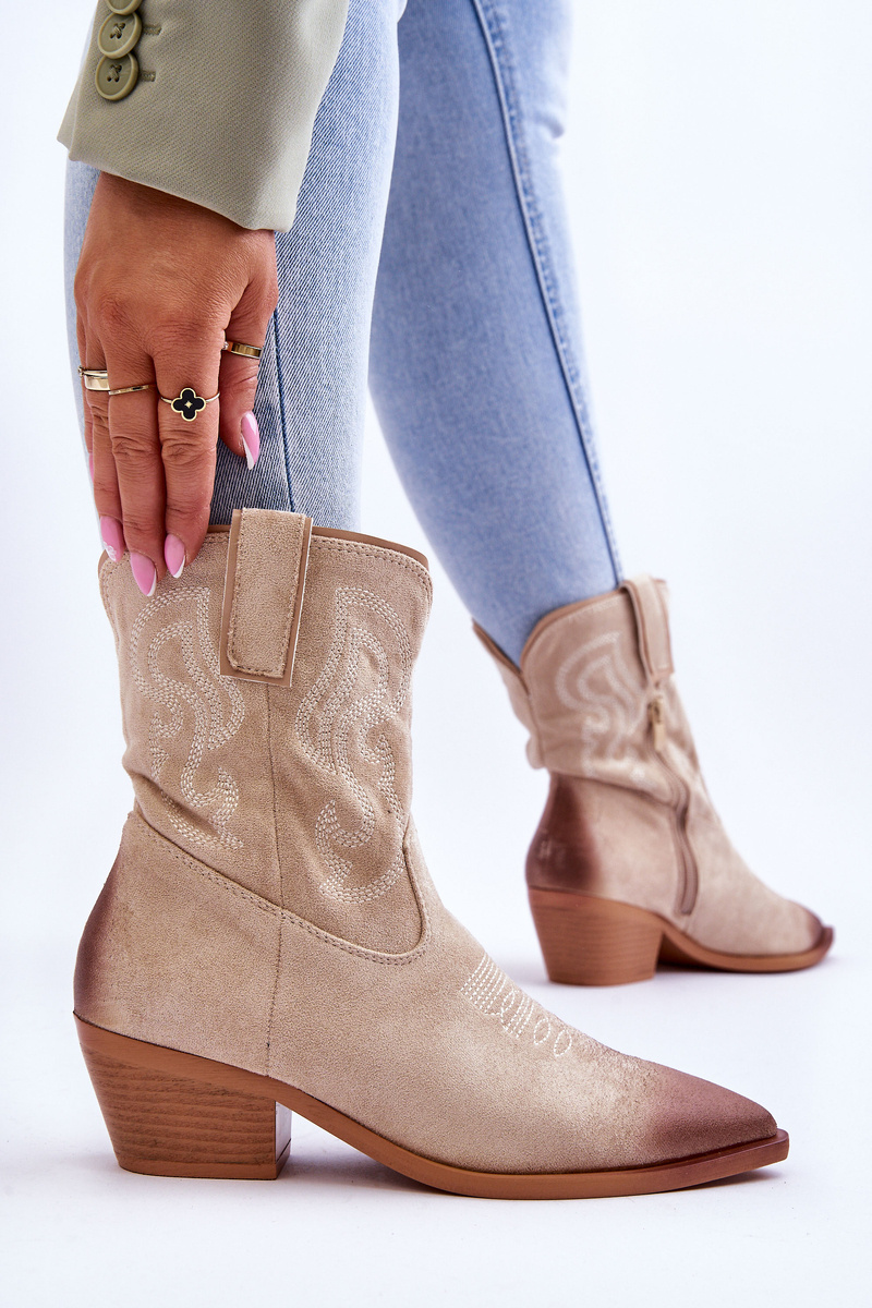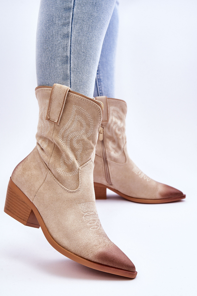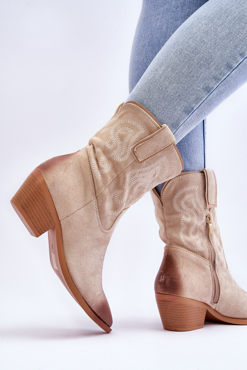 Jeśli tu trafiłaś, to znaczy, że cenisz sobie wyjątkowy styl! Botki na obcasie to buty, które można nosić niemalże do każdej stylizacji i jednocześnie zachwycać wyglądem. Wykonane z eko zamszu z cieniowaniem na przodzie oraz tyle cholewki. Zapinane z boku na suwak. Model o fasonie kowbojek. Stabilny, szeroki obcas zapewnia wygodę podczas użytkowania. Te botki świetnie sprawdzą się w wielu stylizacjach.