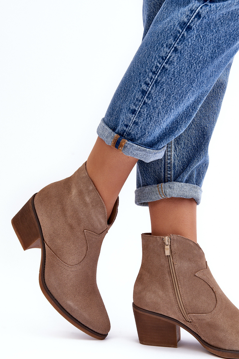 Botki Kowbojki Zamsz Suwak Ciemnobeżowe D&A SN622-29