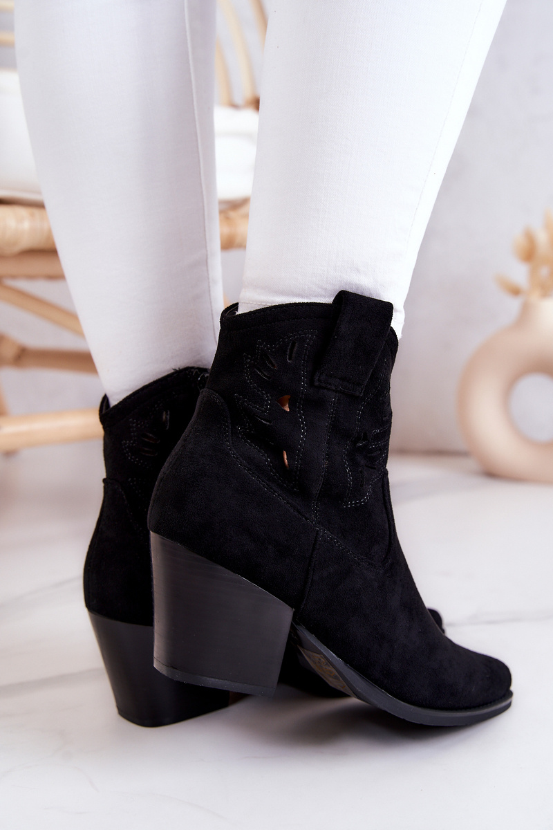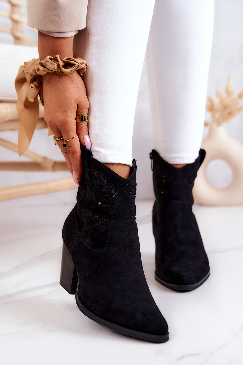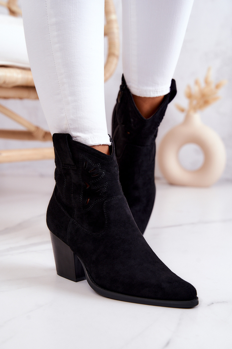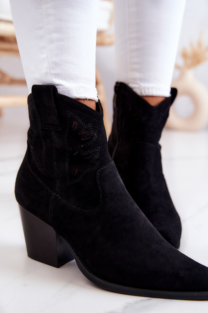 Botki Kowbojki Zamszowe Damskie Na Suwak Czarne Devon
