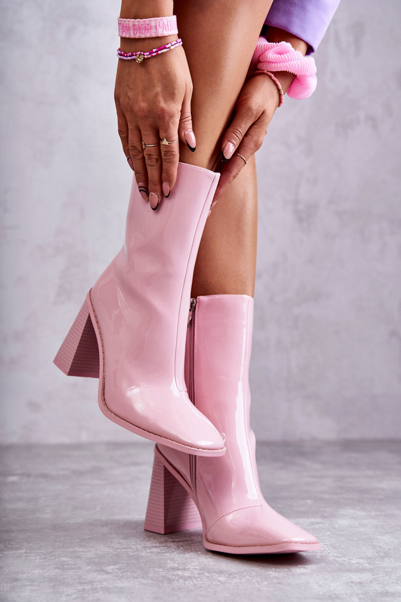 Jeśli tu trafiłaś, to znaczy, że cenisz sobie wyjątkowy styl! Botki na obcasie to buty, które można nosić niemalże do każdej stylizacji i jednocześnie zachwycać wyglądem. Wykonane z lakierowanej eko skóry. Posiadają kwadratowy nosek. Osadzone na obcasie w postaci słupka. Model z cholewką do połowy łydki. Zapinane z boku na suwak. Krótkie kozaki posiadają ocieplenie w postaci miłego w dotyku koca obuwniczego.