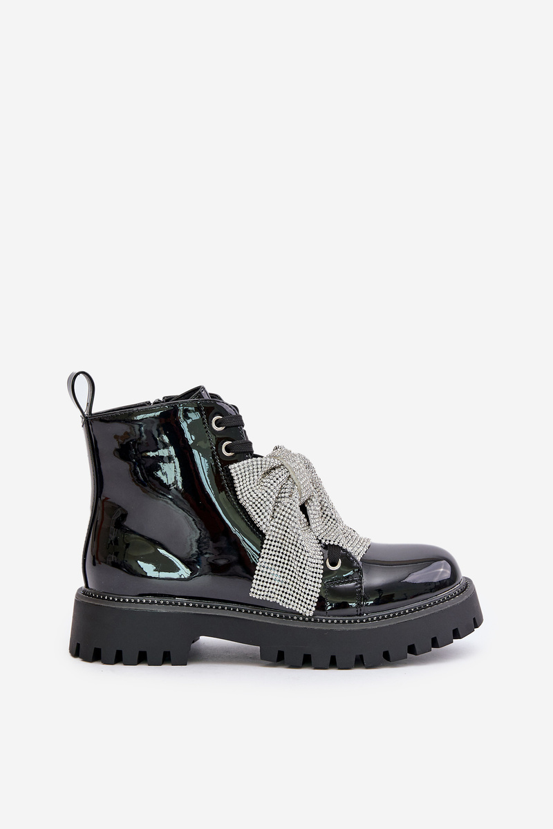 Botki Lakierowane Kokarda Damskie Czarne Ocenttia