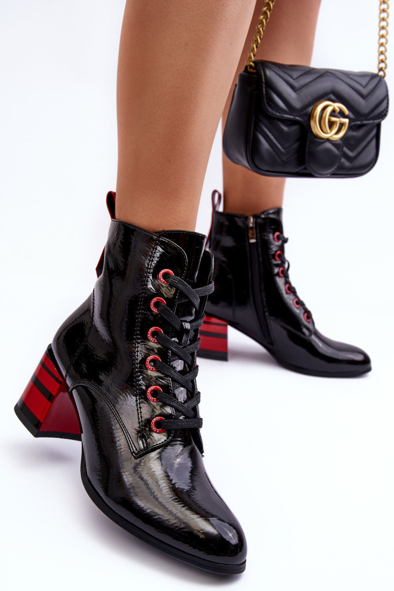 Botki Lakierowane Na Obcasie S.Barski MR870-49 Czarne
