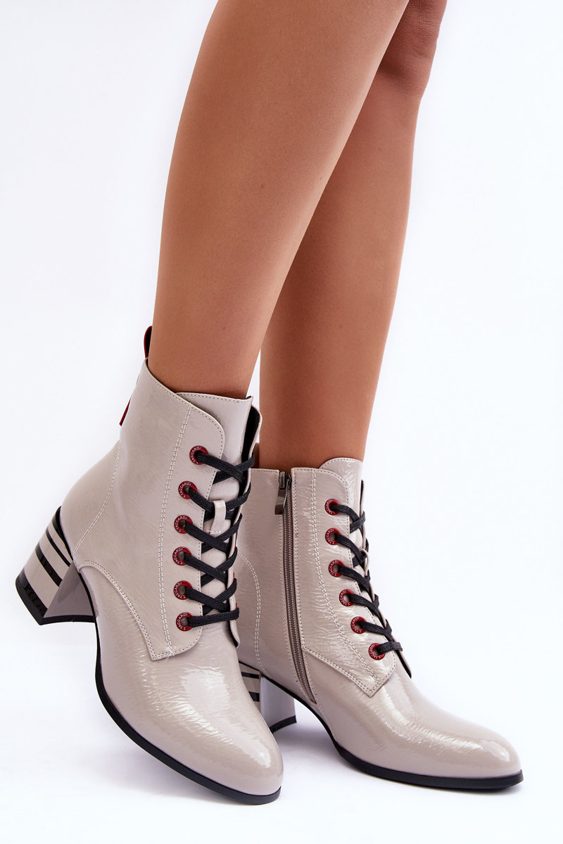 Botki Lakierowane Na Obcasie S.Barski MR870-49 Jasnoszare