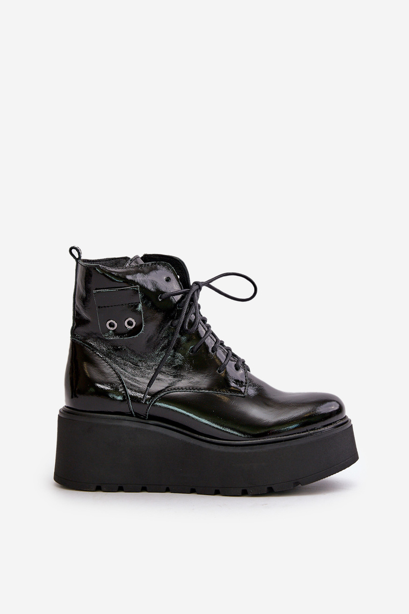 Botki Lakierowane Ocieplane Damskie Na Platformie I Koturnie Skóra Ciemnozielone Zazoo 60499