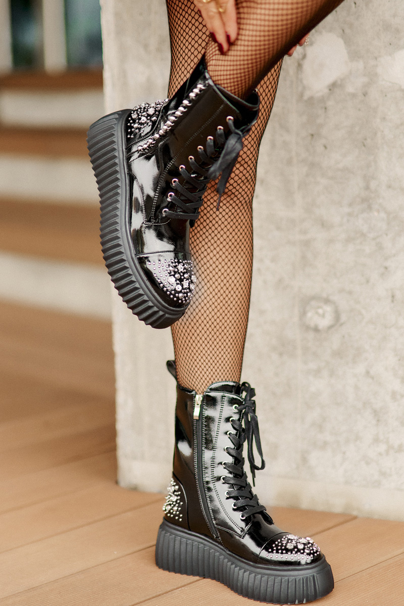 Botki Lakierowane Zdobione Ocieplane Na Platformie Czarne D&A MR880-079