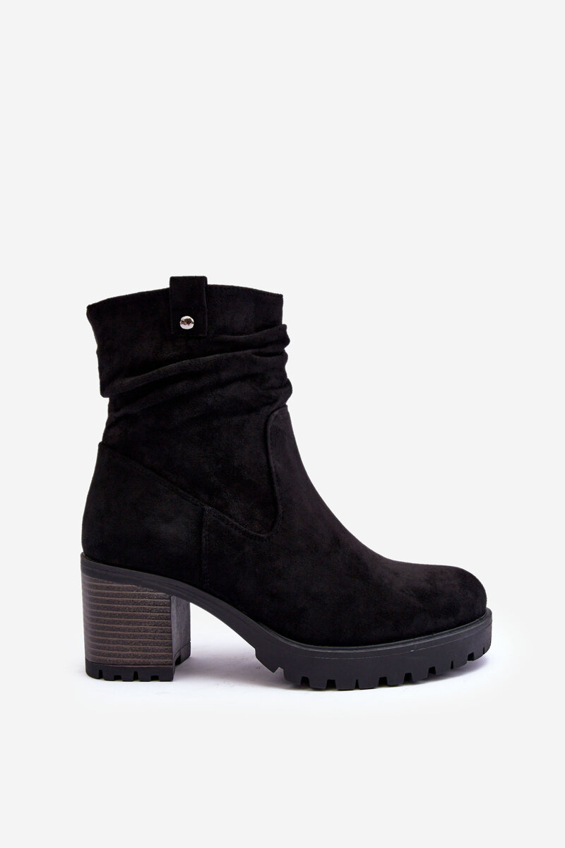 Botki Marszczone Zamsz Czarne Melseo LH110