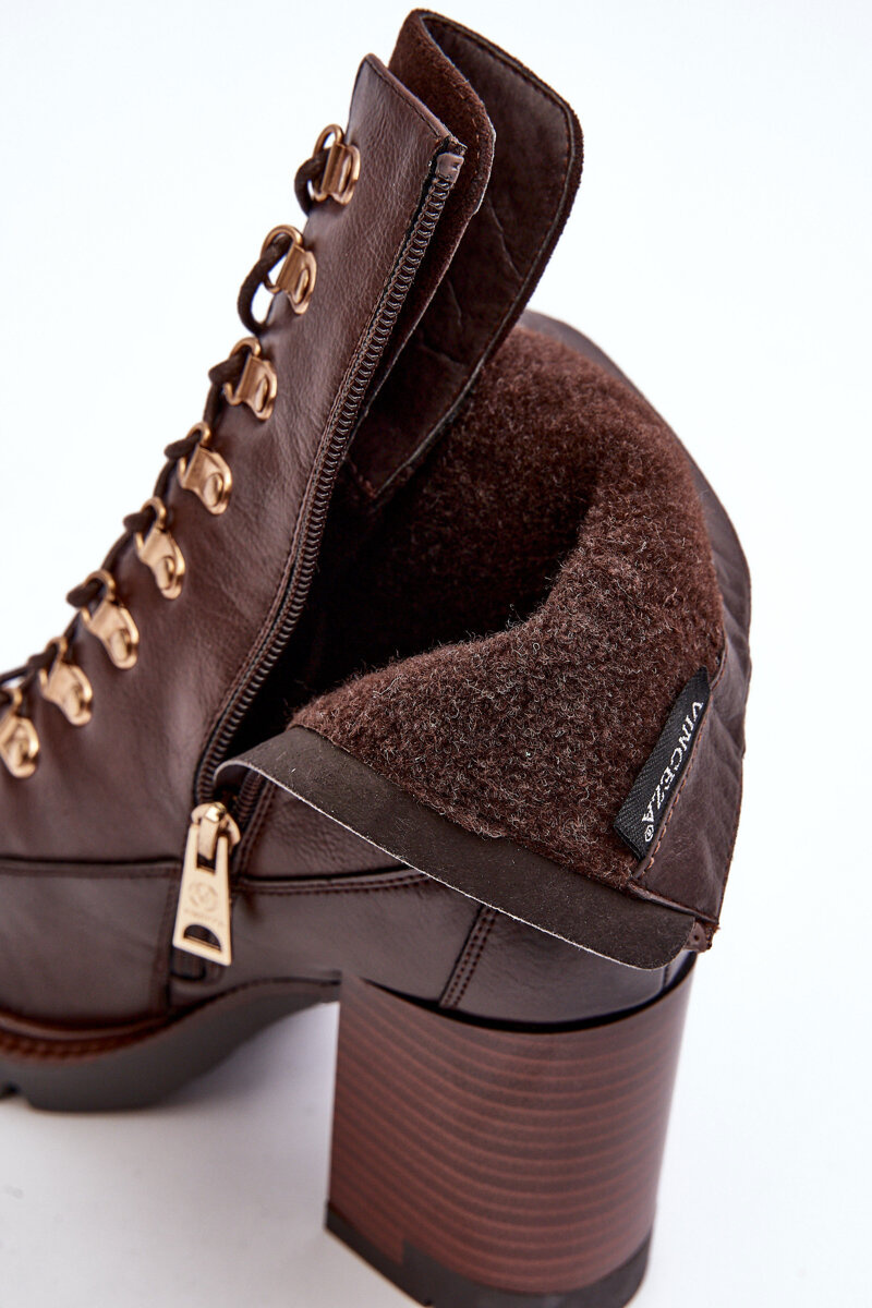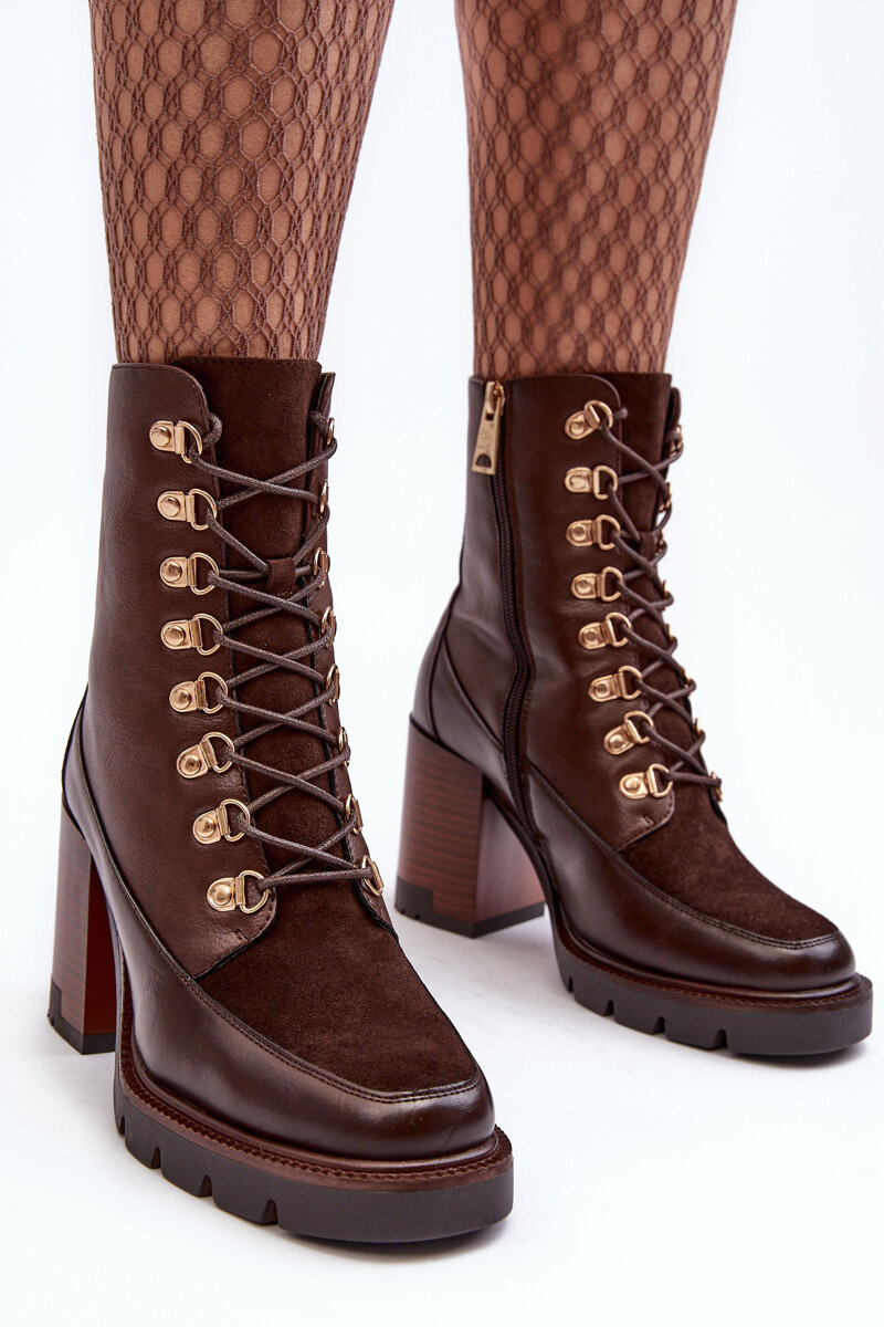 Botki Masywne Sznurowane Na Słupku Brązowe Lathia 58100