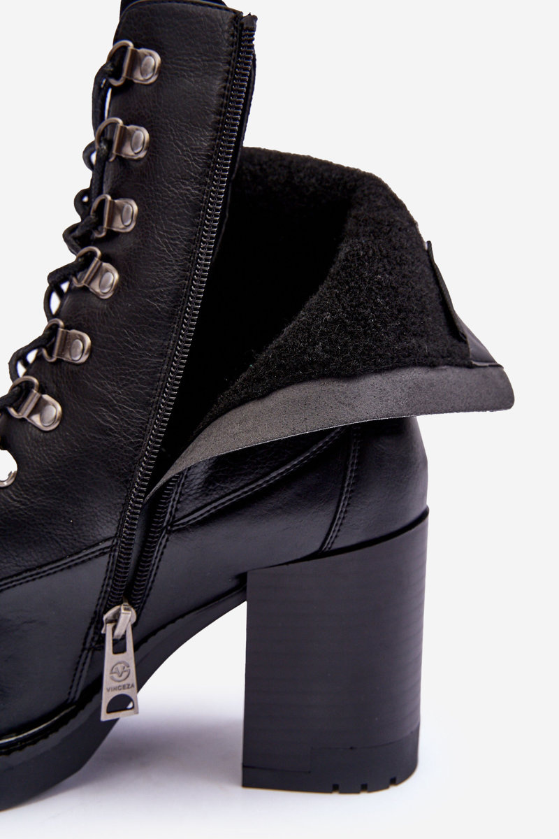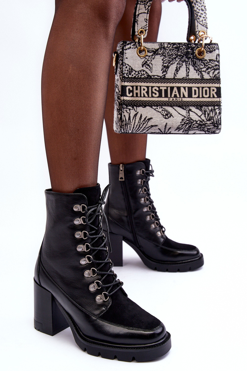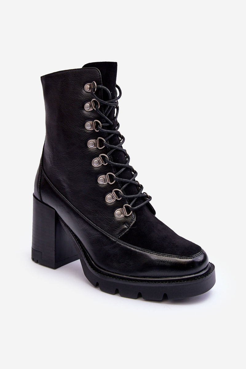 Botki Masywne Sznurowane Na Słupku Czarne Lathia 58100