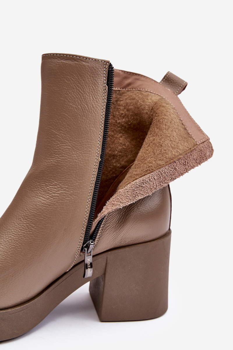 Botki Masywny Obcas Skóra Suwaki Ciemnobeżowe Lemar Littosa 60432