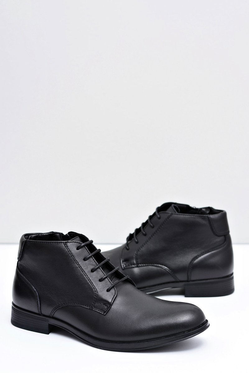 Męskie skórzane botki to coś czego potrzebuje każdy mężczyzna! Wykonane z najwyższej jakości skóry skóry naturalnej, świetnie sprawdzą się na okazałe uroczystości! Ocieplenie w postaci polaru zapewni odpowiednią temperaturę dla Twoich stóp. Obuwie są sznurowane oraz zapinane na zamek z boku cholewki.Przy wyborze rozmiaru prosimy kierować się tabelą rozmiarów!