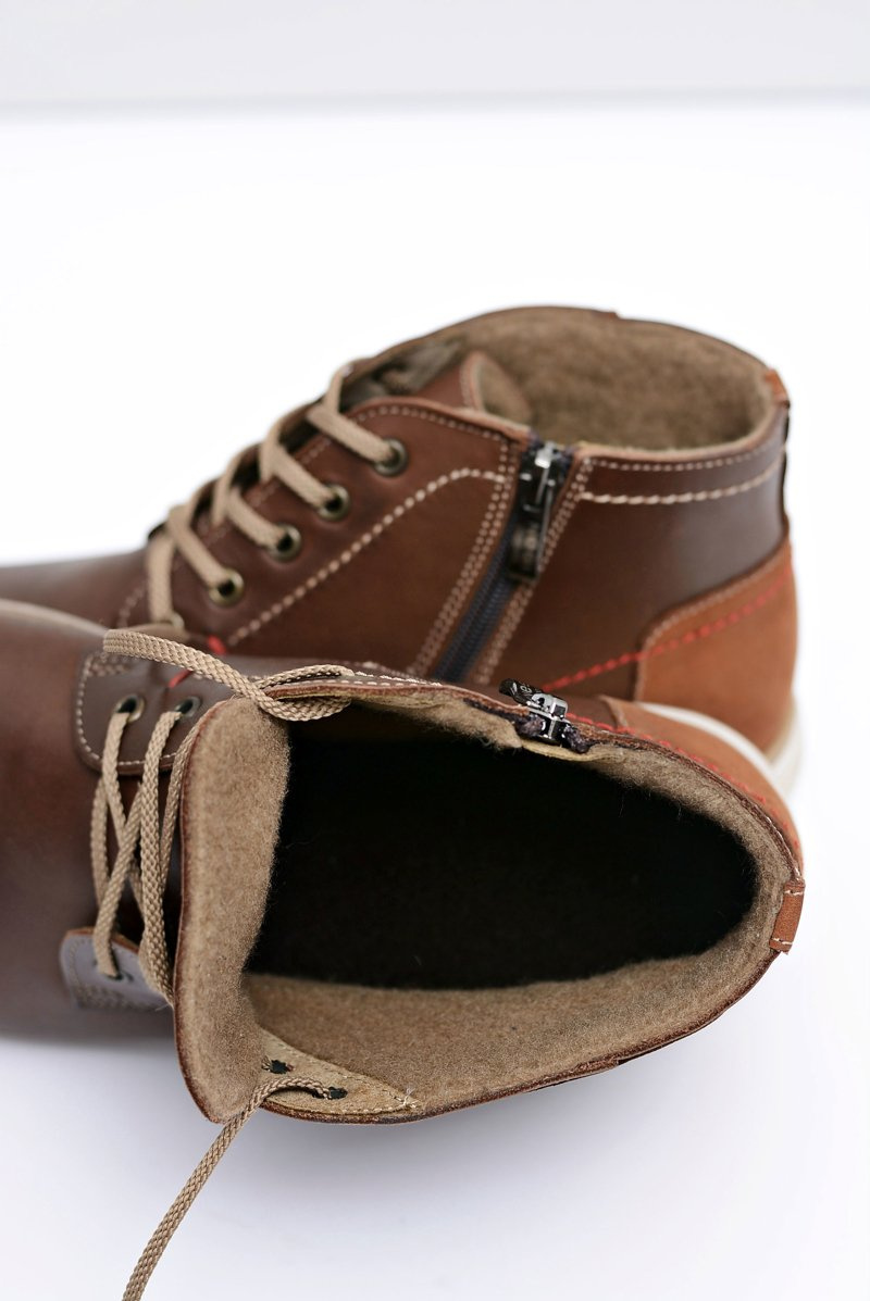 Botki Męskie Skórzane Ocieplane Brązowe Fresco