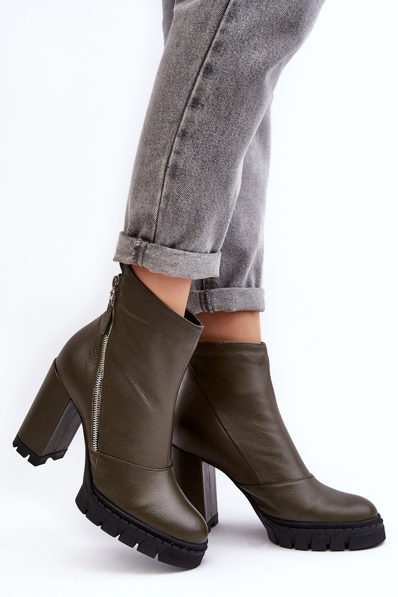 Jeśli tu trafiłaś, to znaczy, że cenisz sobie wyjątkowy styl! Botki na obcasie to buty, które można nosić niemalże do każdej stylizacji i jednocześnie zachwycać wyglądem. Wykonane z naturalnej skóry. Model osadzony na obcasie w postaci słupka. Antypoślizgowa podeszwa ze żłobieniami zapewni stabilność na każdym kroku. Zapinane na suwak z zewnętrznej strony cholewki. Botki posiadają ocieplenie w postaci koca obuwniczego.