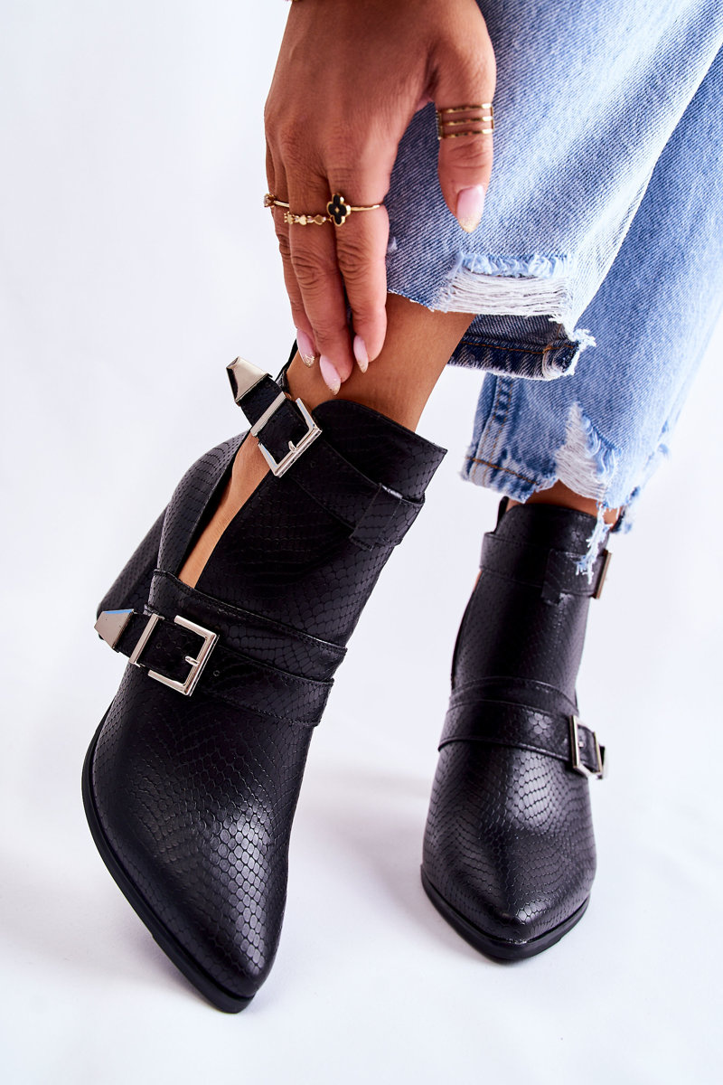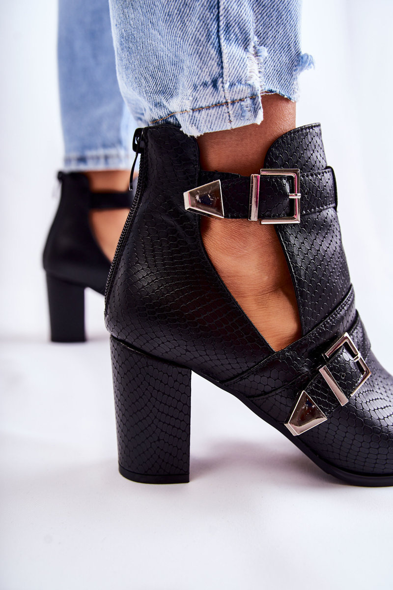 Botki Modne Słupek Wycięcia Czarne Suelo