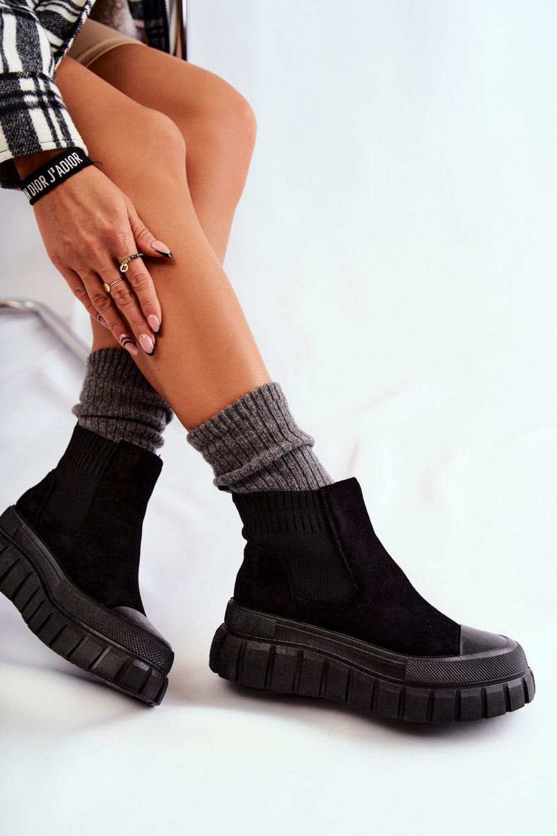 Botki Modne Wsuwane Platforma Czarne Jenna
