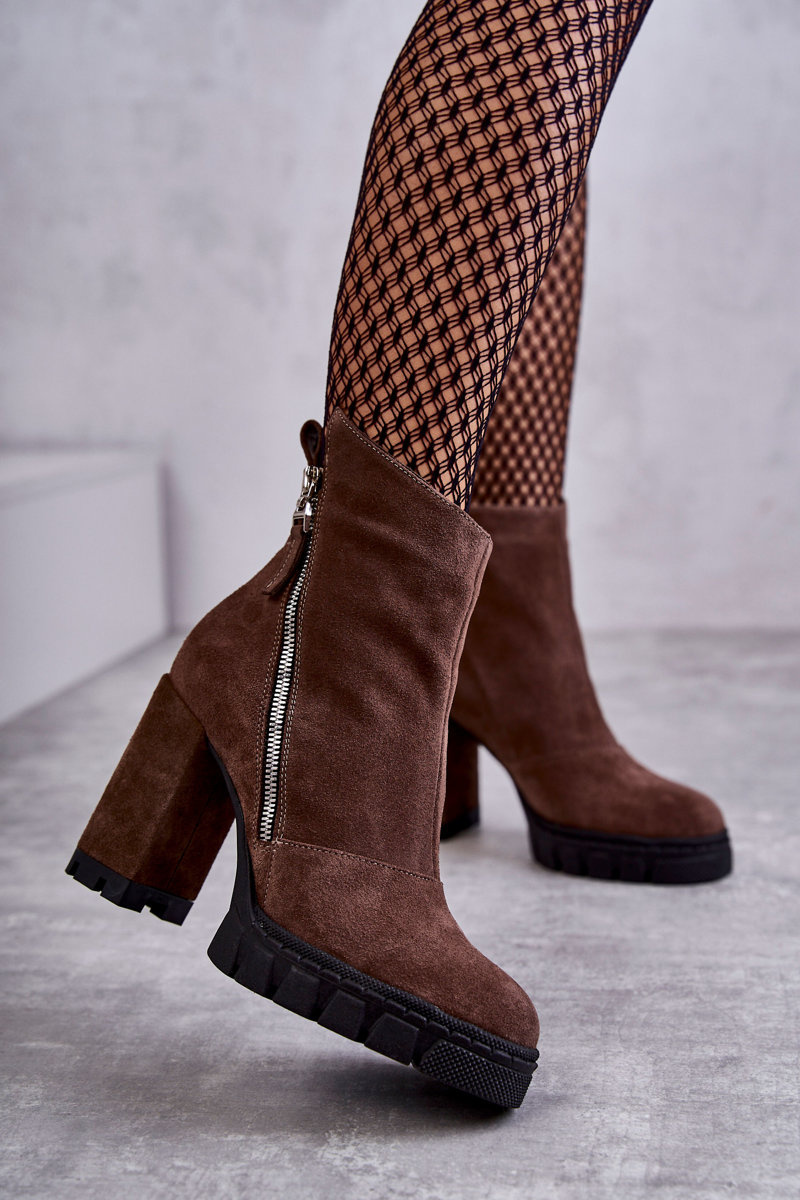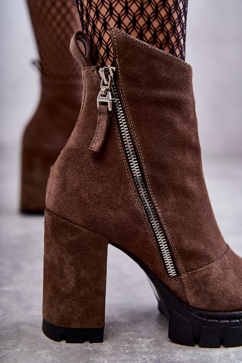 Botki Modne Zamsz Obcas Brązowe Laura Messi 2509