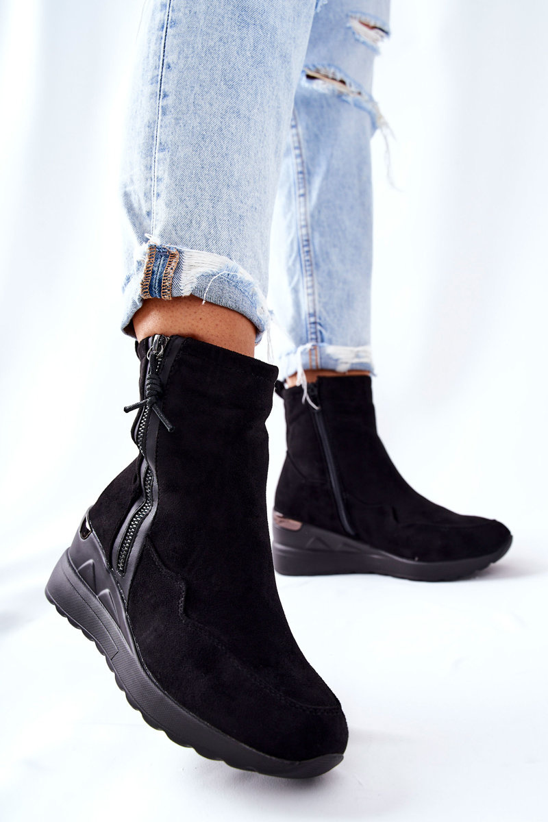 Opinie o Botki Na Koturnie Zamszowe Czarne Athelaine